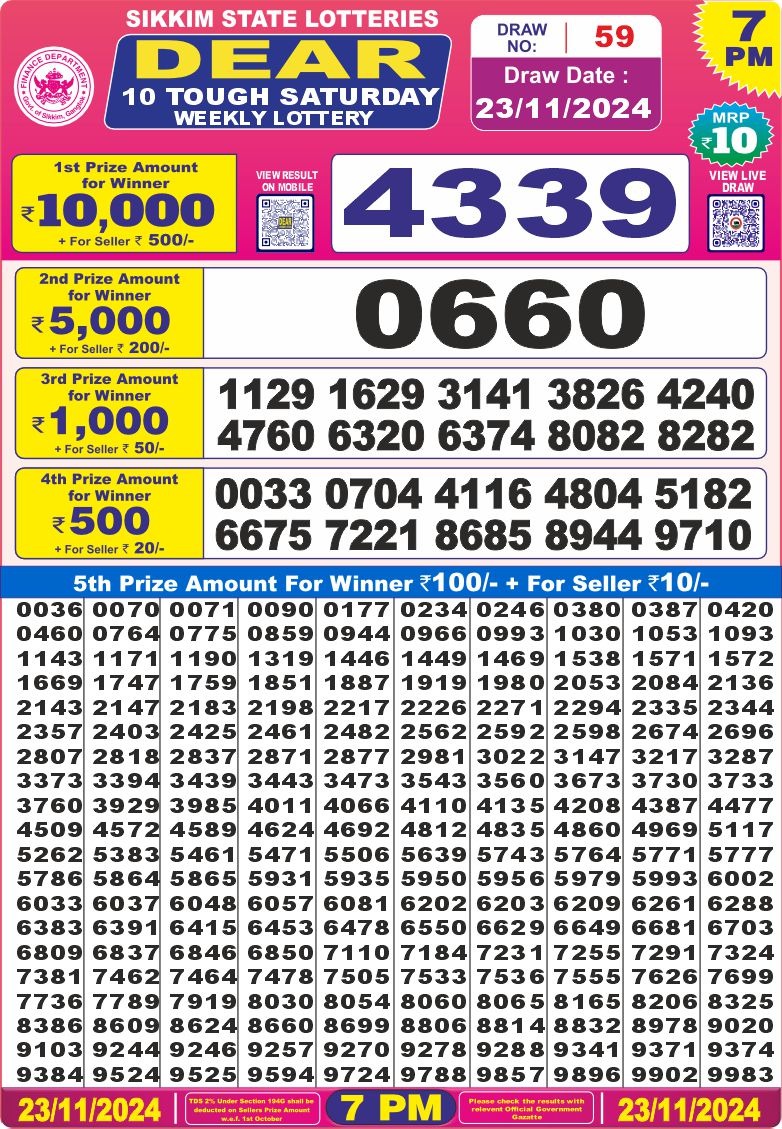 Dear yamuna sunday Weekly 1pm result 24.11.24