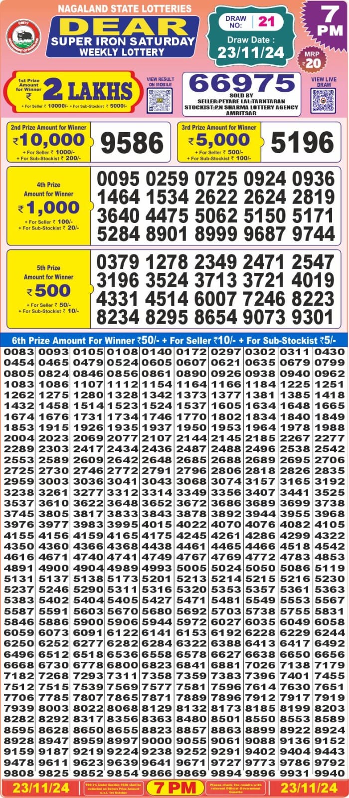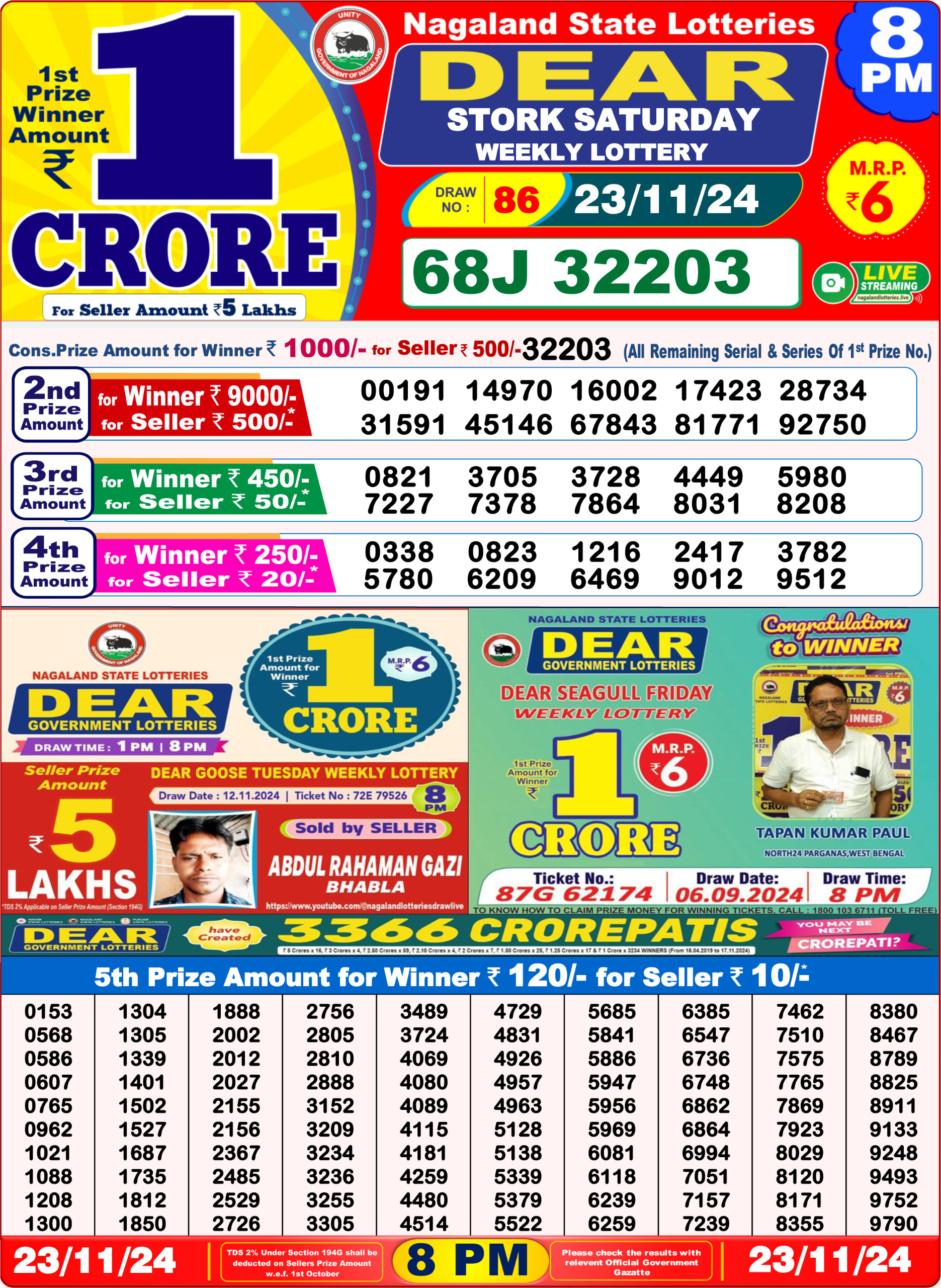 Dear stork Weekly Lottery 8PM Result 23.11.24