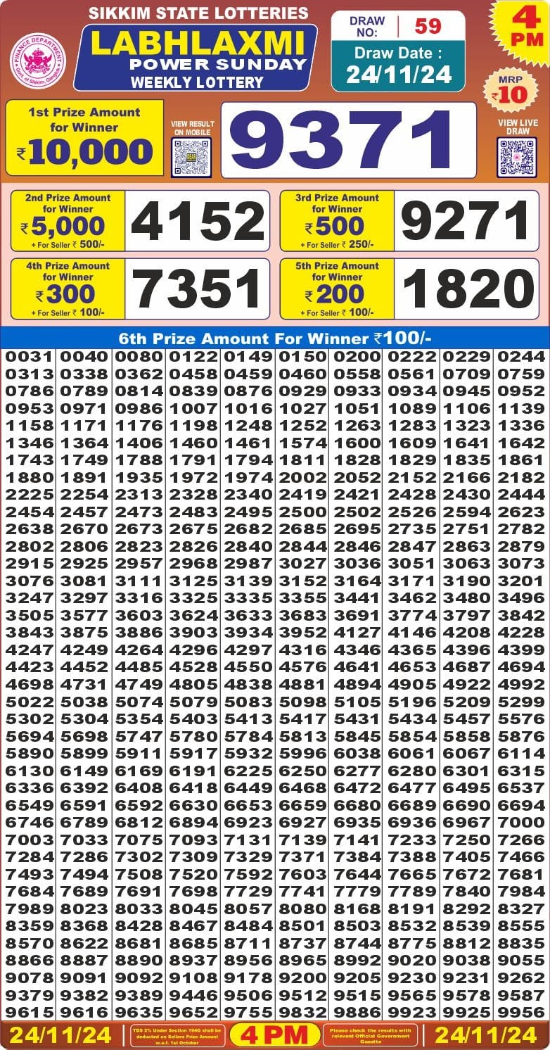 LabhLaxmi power weekly 4PM Result 24.11.24