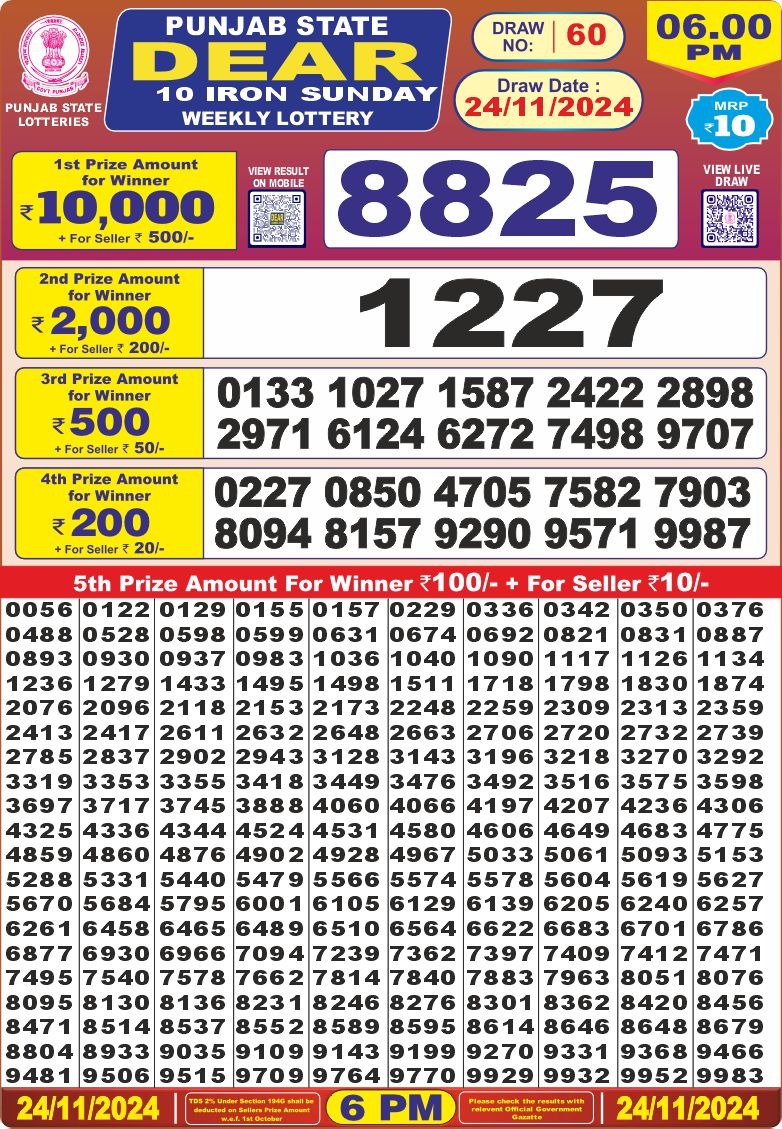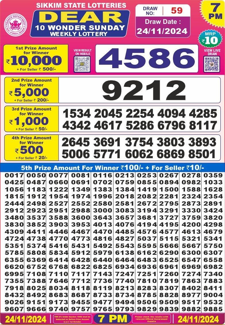 Dear 10 violet lottery 1.30PM Result 24.11.24