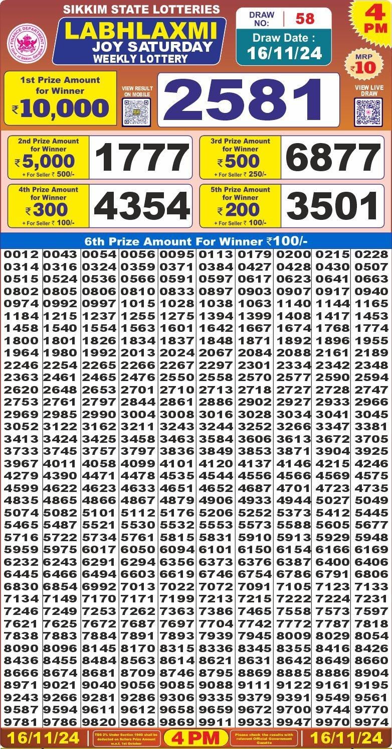 LabhLaxmi joy weekly 4PM Result 16.11.24