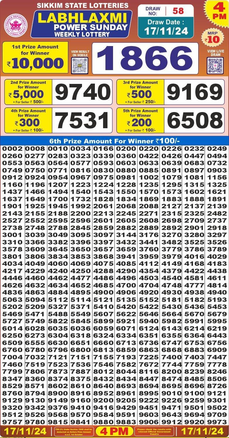 LabhLaxmi power weekly 4PM Result 17.11.24