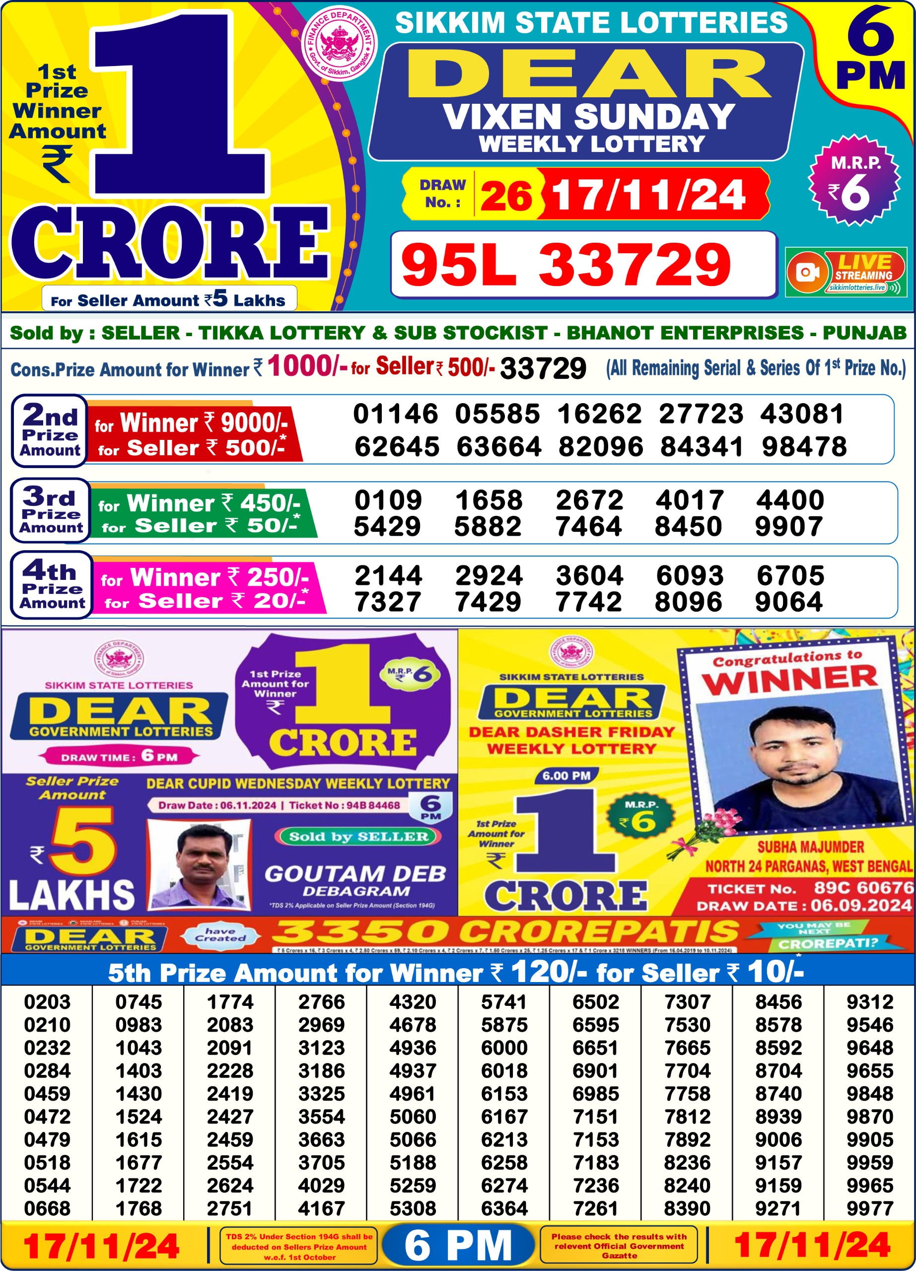 Dear vixen sunday weekly  6PM Result 17.11.24