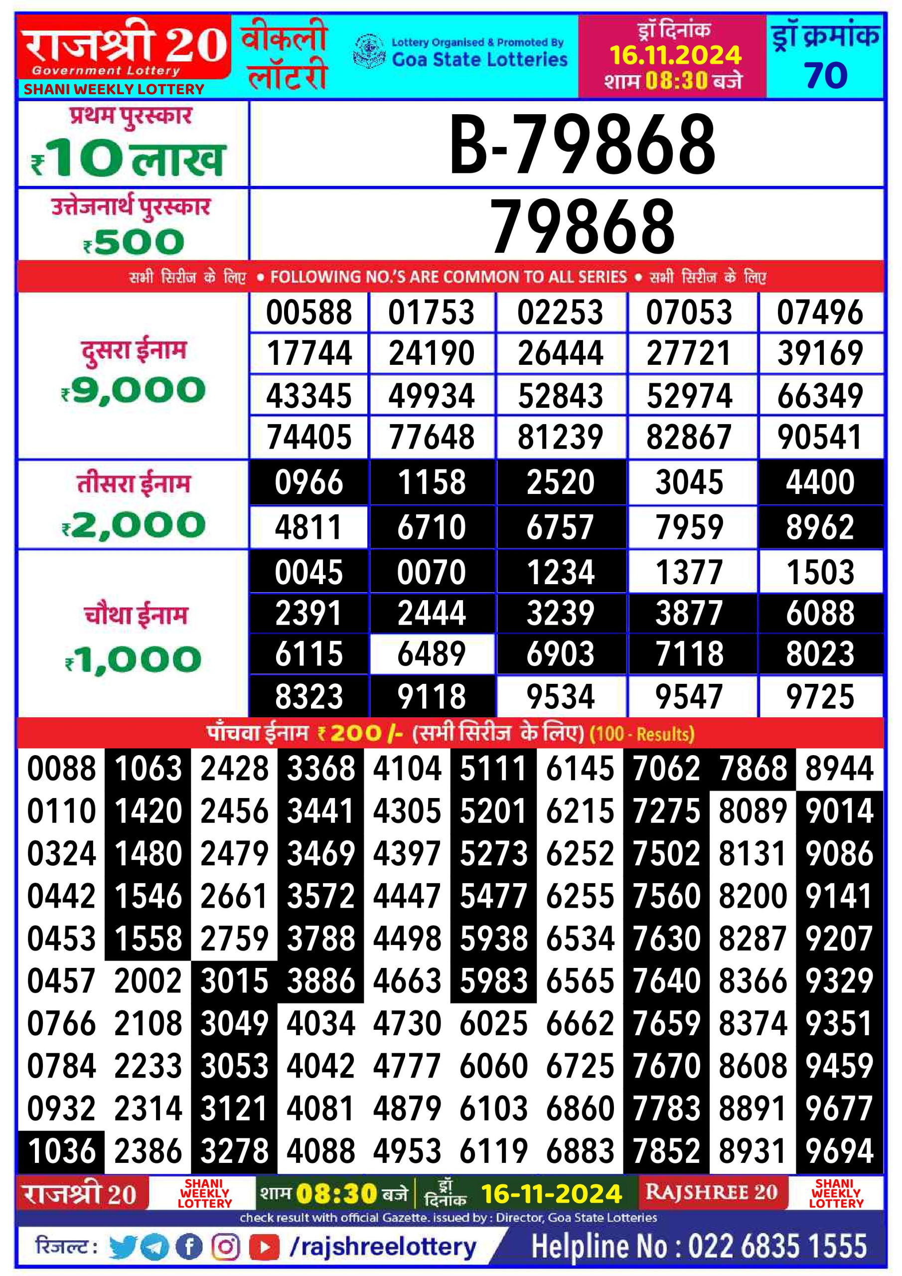 Rajshree 10 evening Saturday  5:40pm result 16.11.24