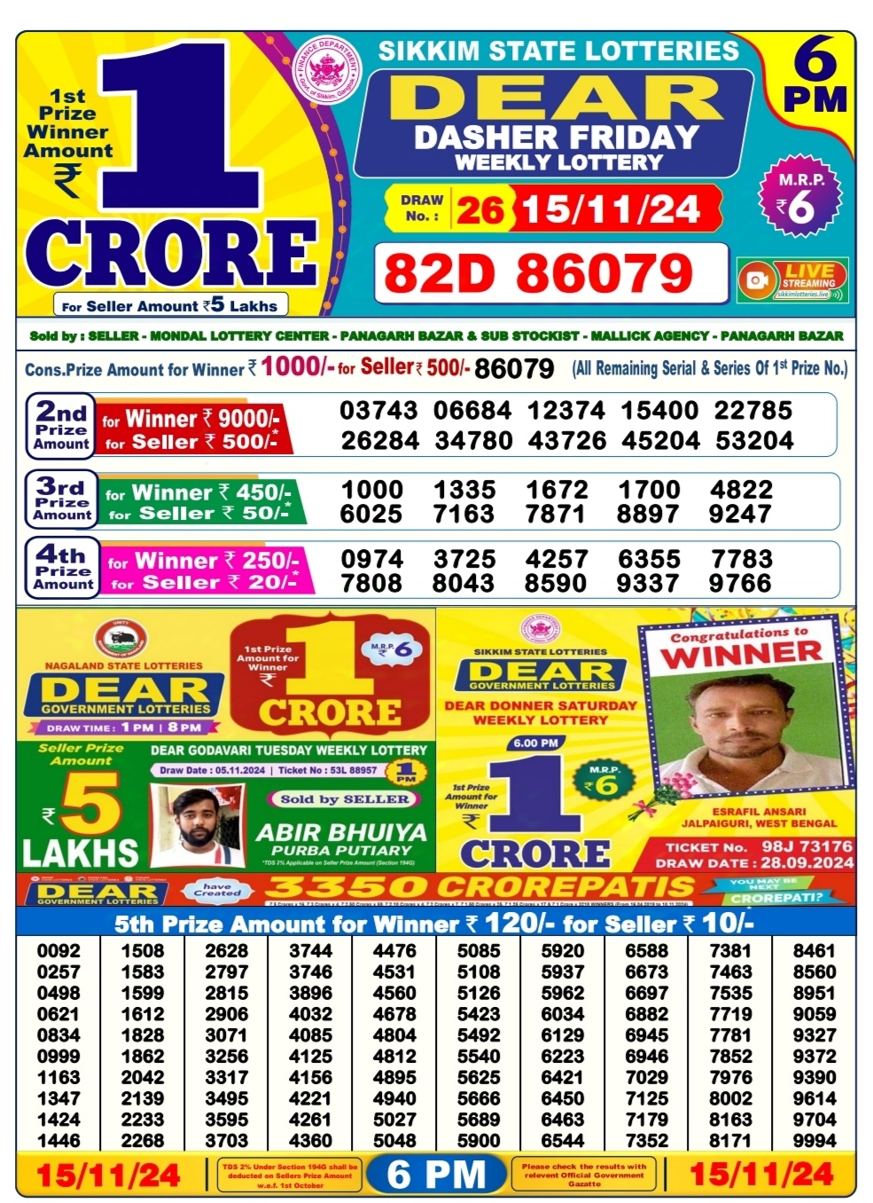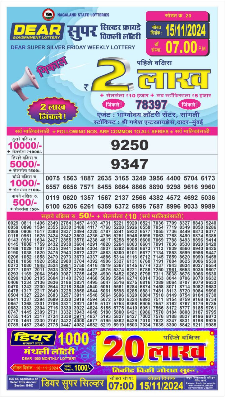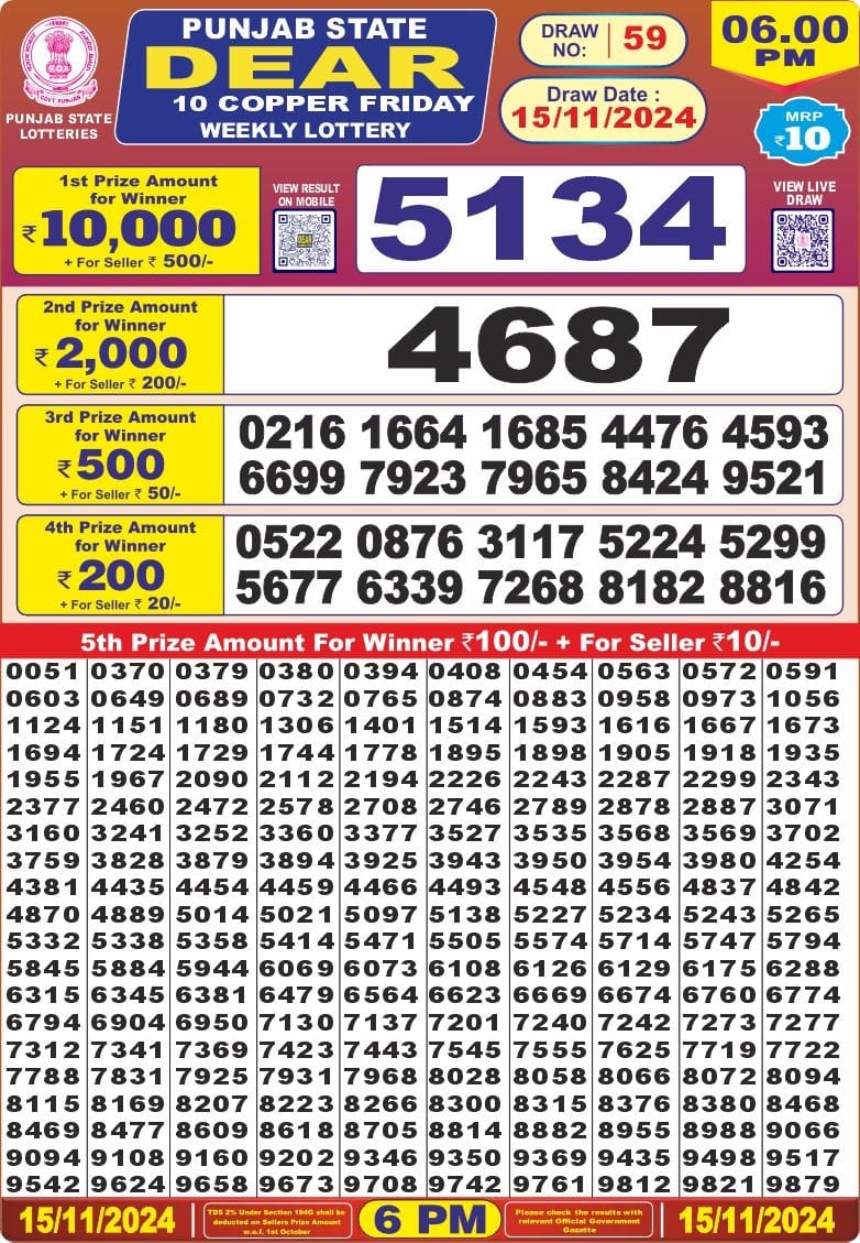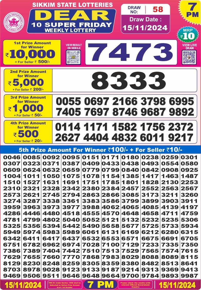 Dear dasher Friday weekly  6PM Result 15.11.24