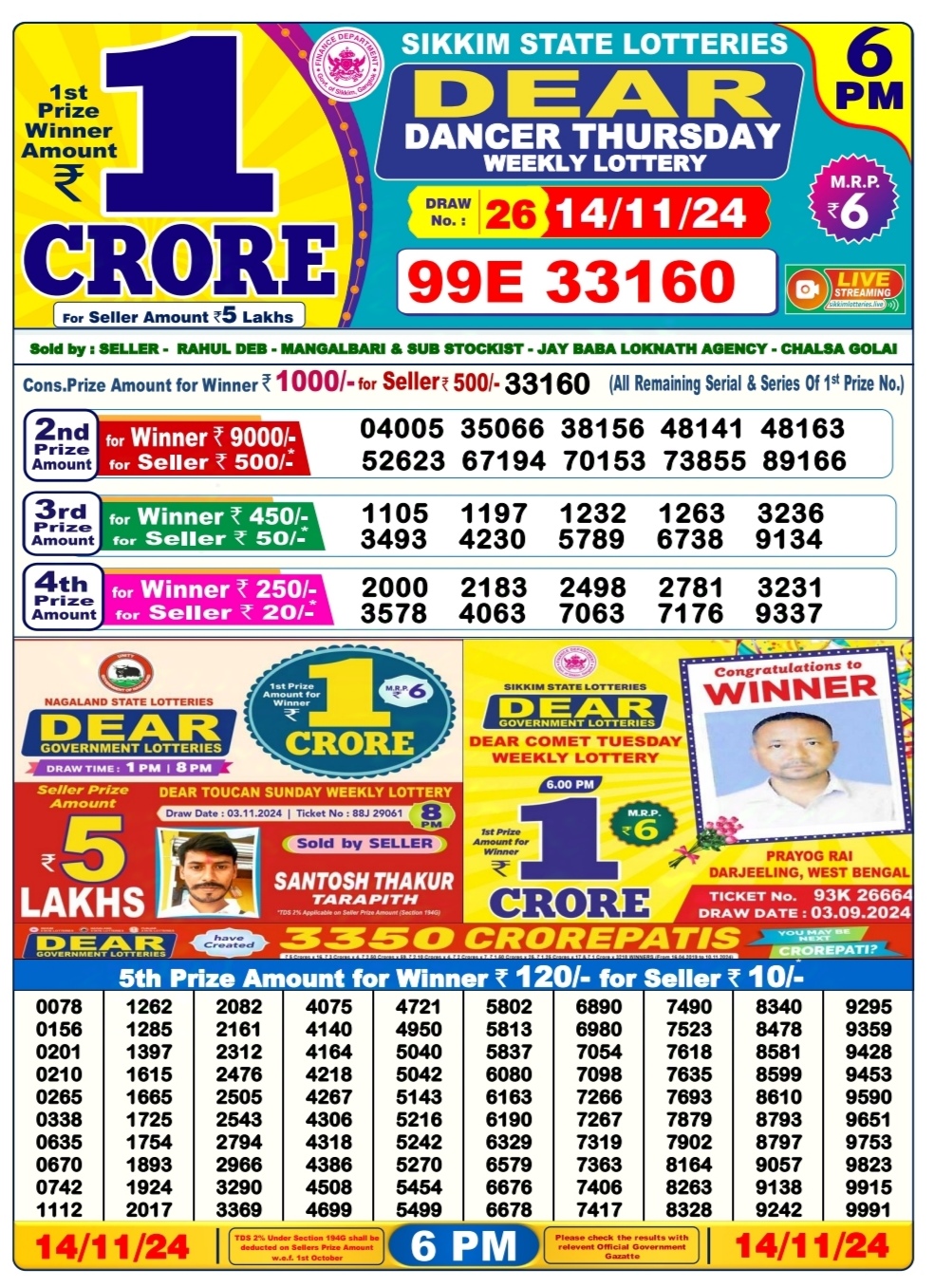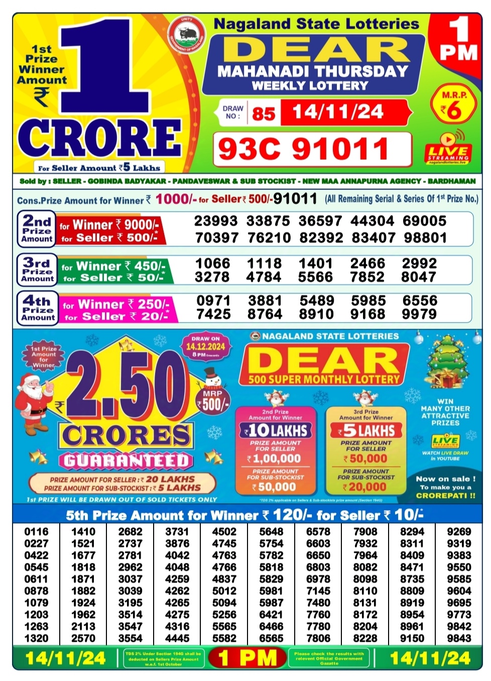 Dear mahanadi Wednesday Weekly 1pm result 13.11.24