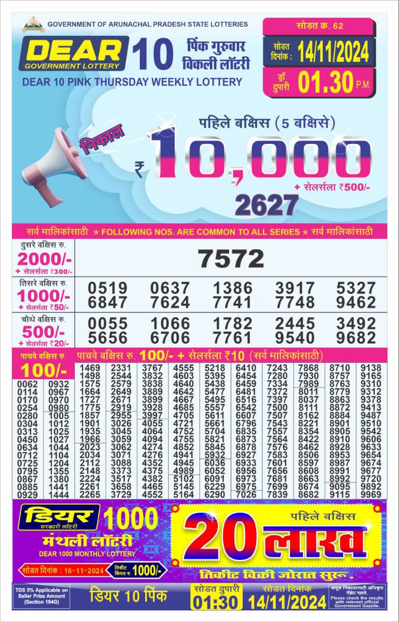 Dear 10 green lottery 1.30PM Result 14.11.24
