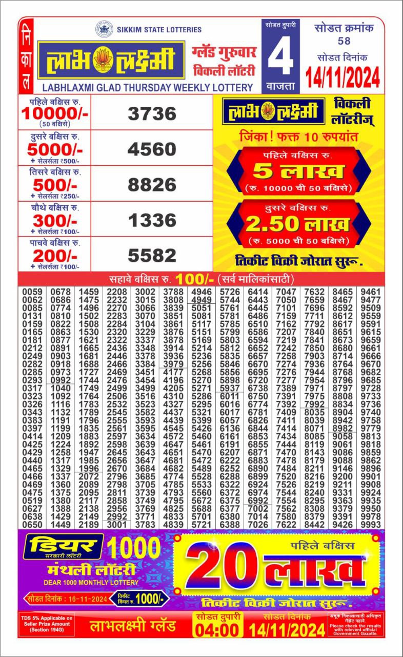 LabhLaxmi glad weekly 4PM Result 14.11.24