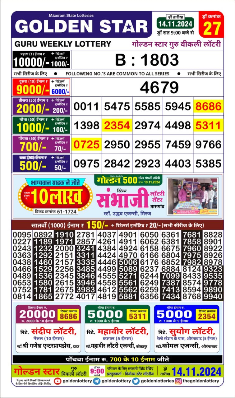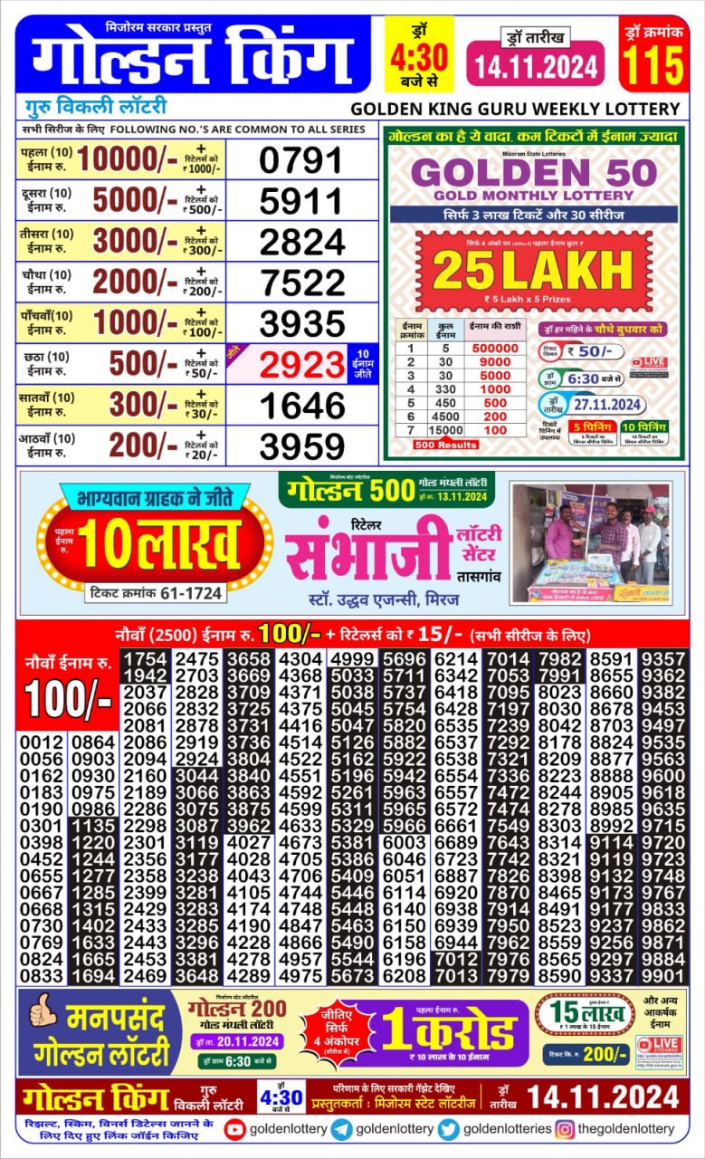 Golden king  weekly lottery 4.30pm result 14.11.24