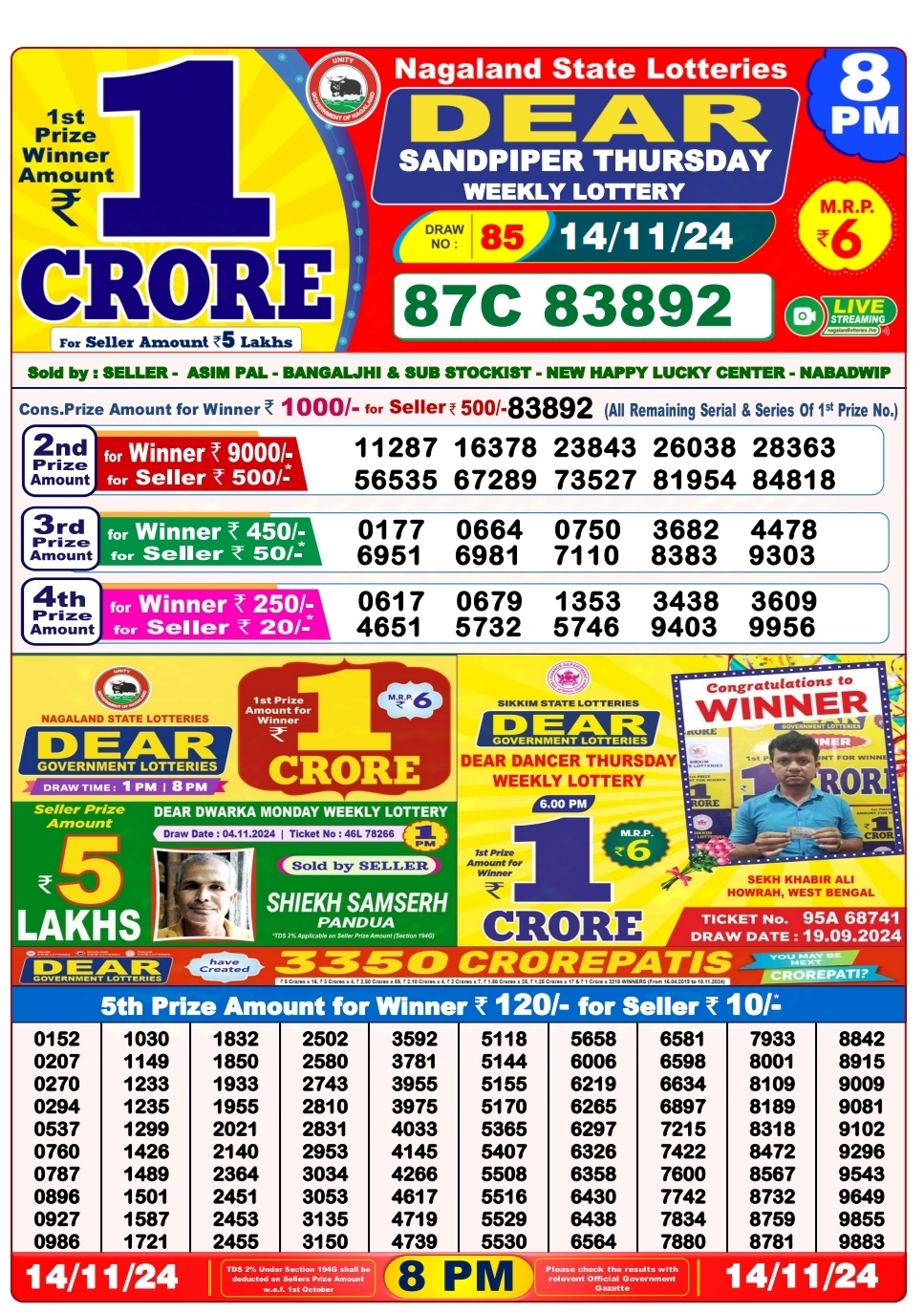 Dear sandpiper  Weekly Lottery 8PM Result 14.11.24
