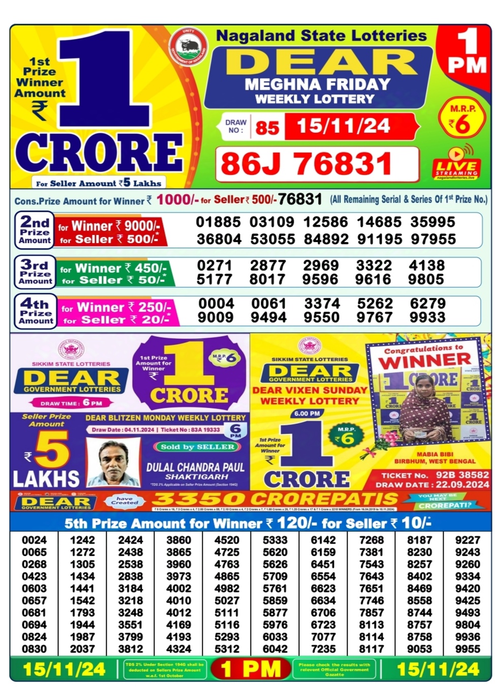 Dear mehgna Friday Weekly 1pm result 15.11.24