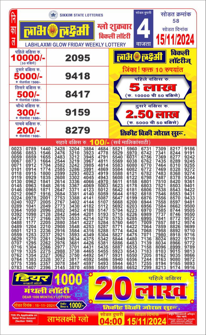 LabhLaxmi glow weekly 4PM Result 15.11.24