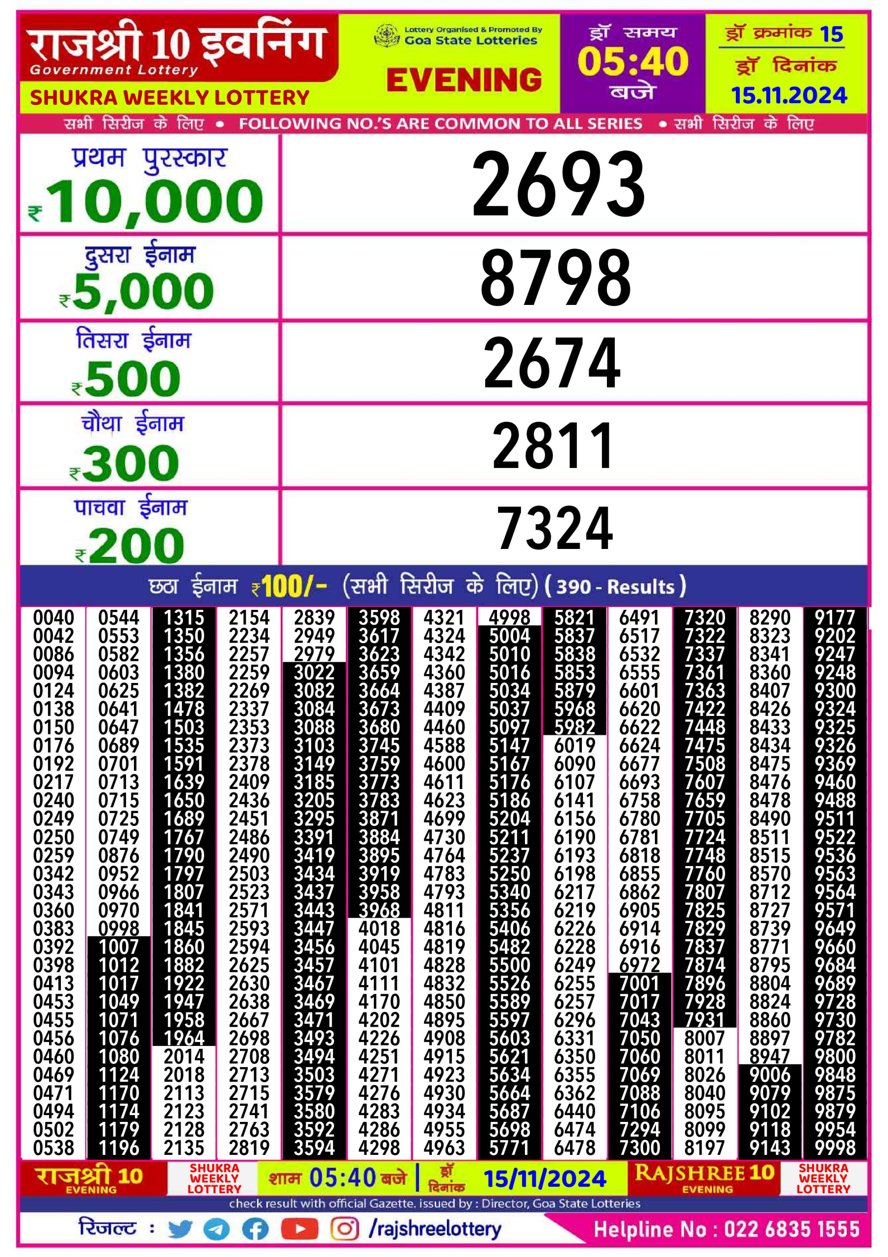 Rajshree 10 evening friday  5:40pm result 15.11.24