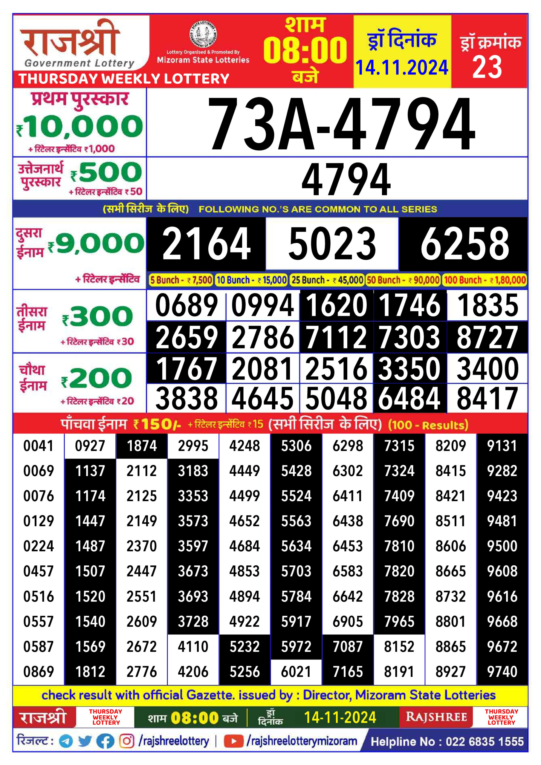 Rajshree 10 evening wednesday  5:40pm result 14.11.24
