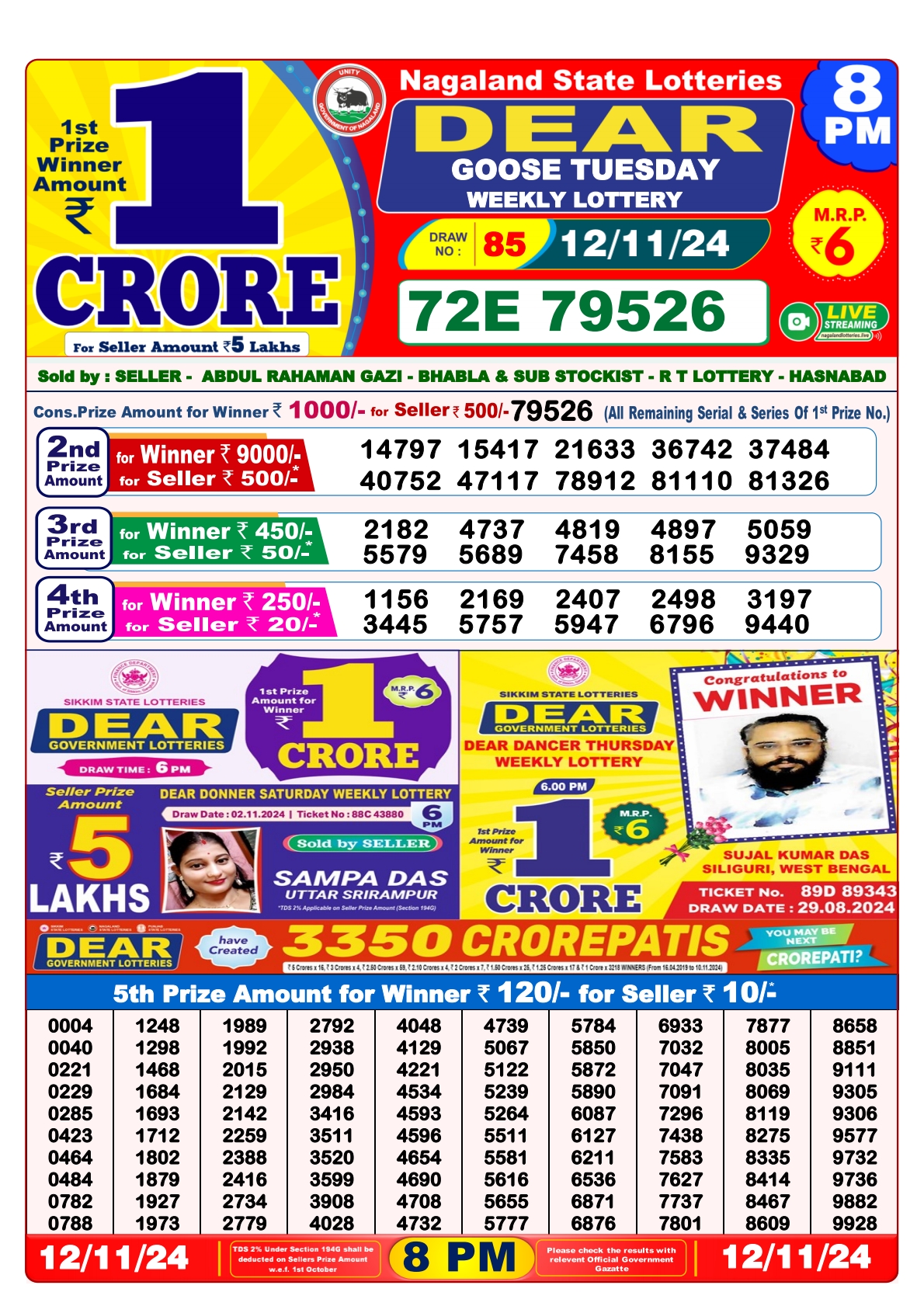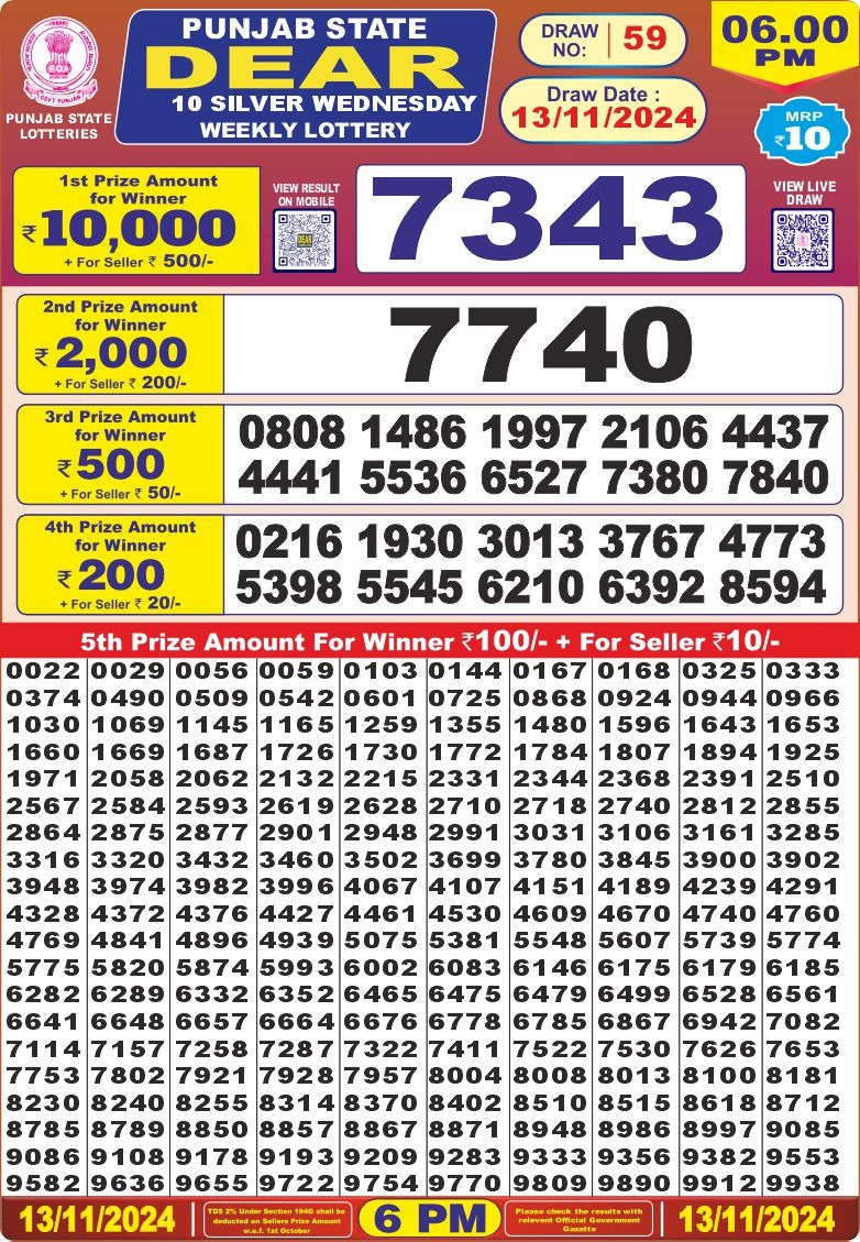 Dear 10 green lottery 1.30PM Result 13.11.24