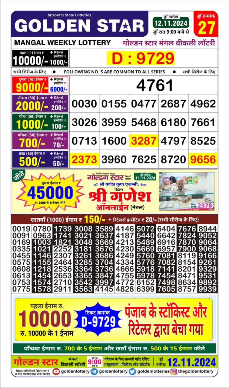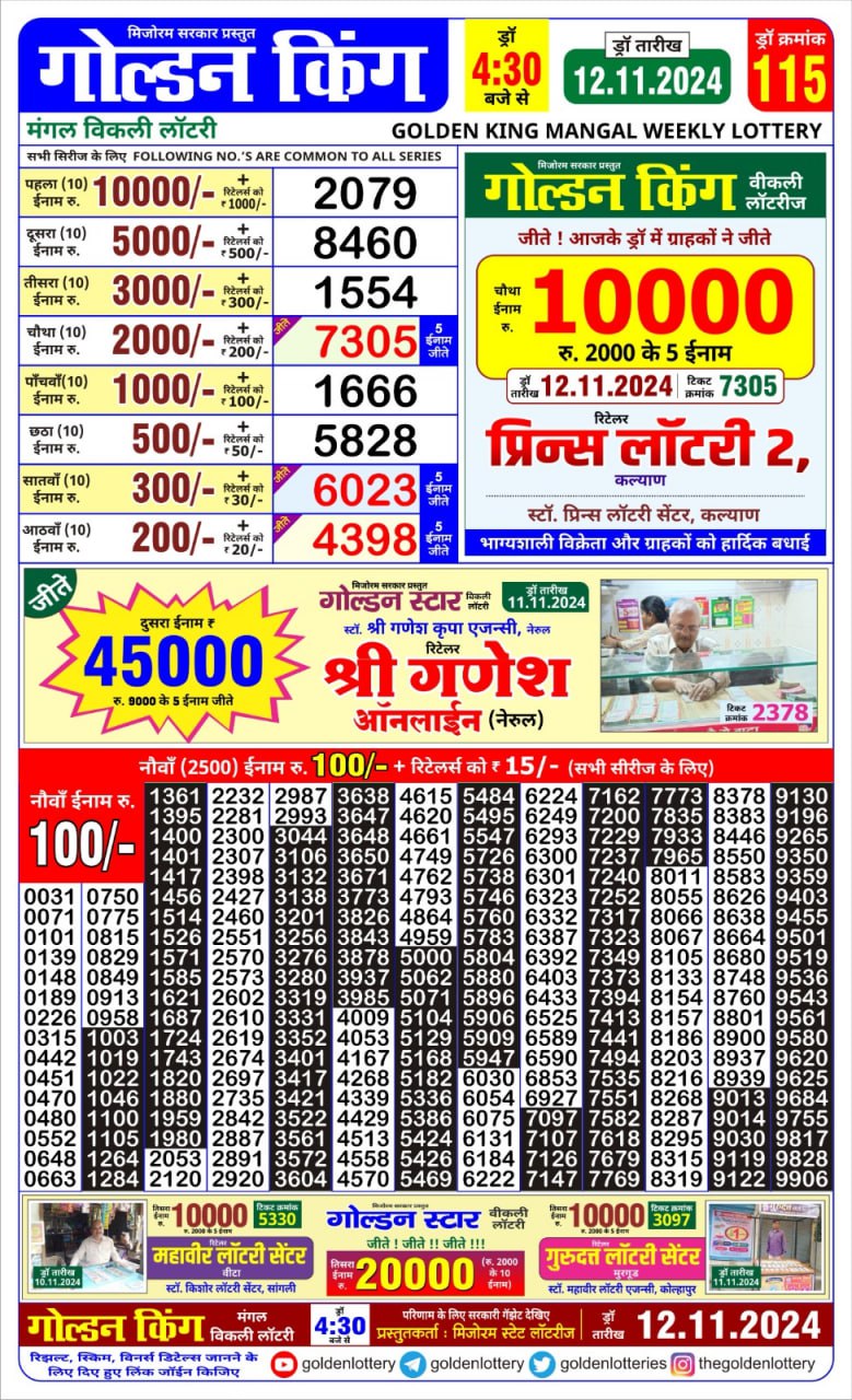 Golden king  weekly lottery 4.30pm result 12.11.24