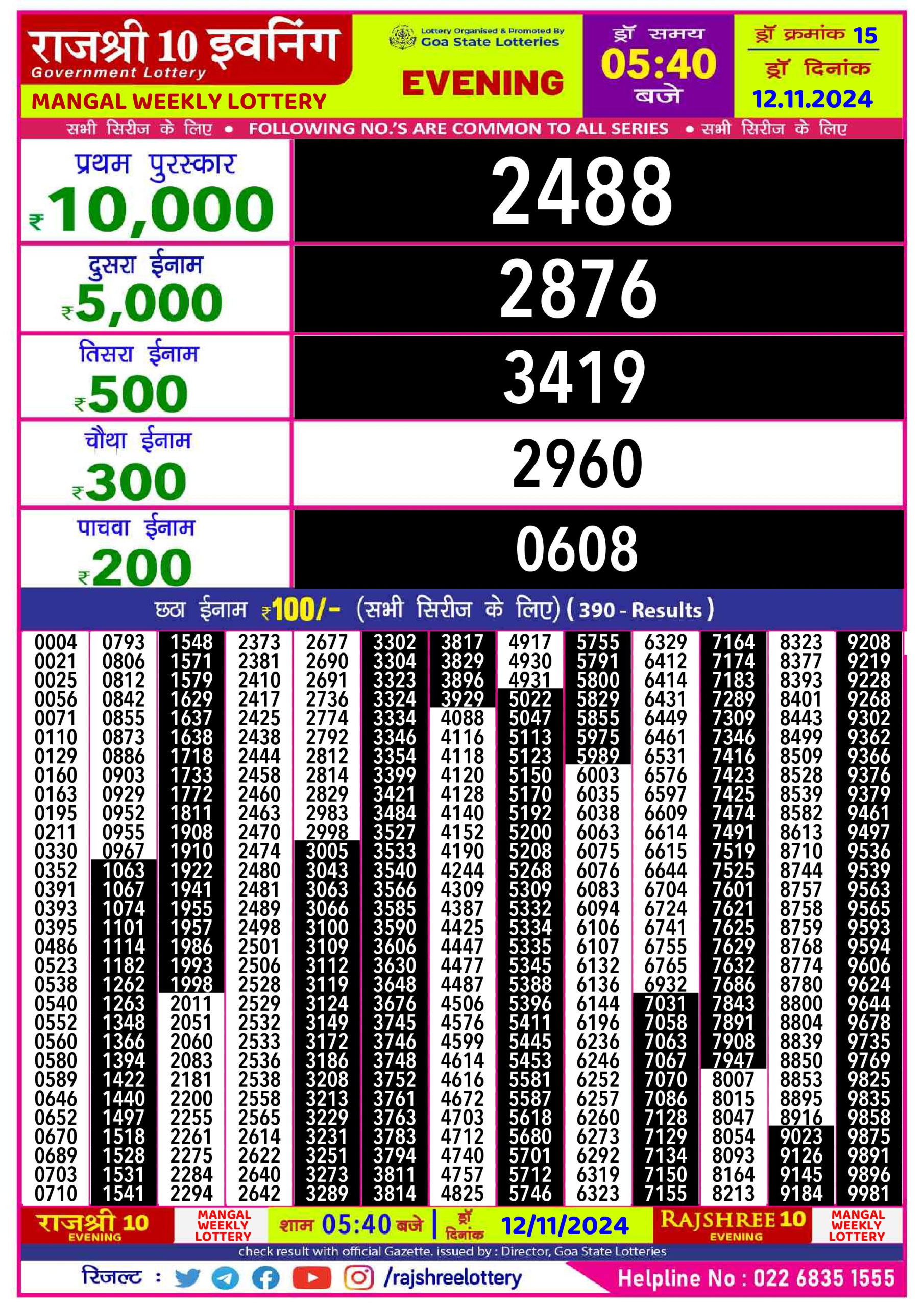 Rajshree 10 evening tuesday  5:40pm result 12.11.24