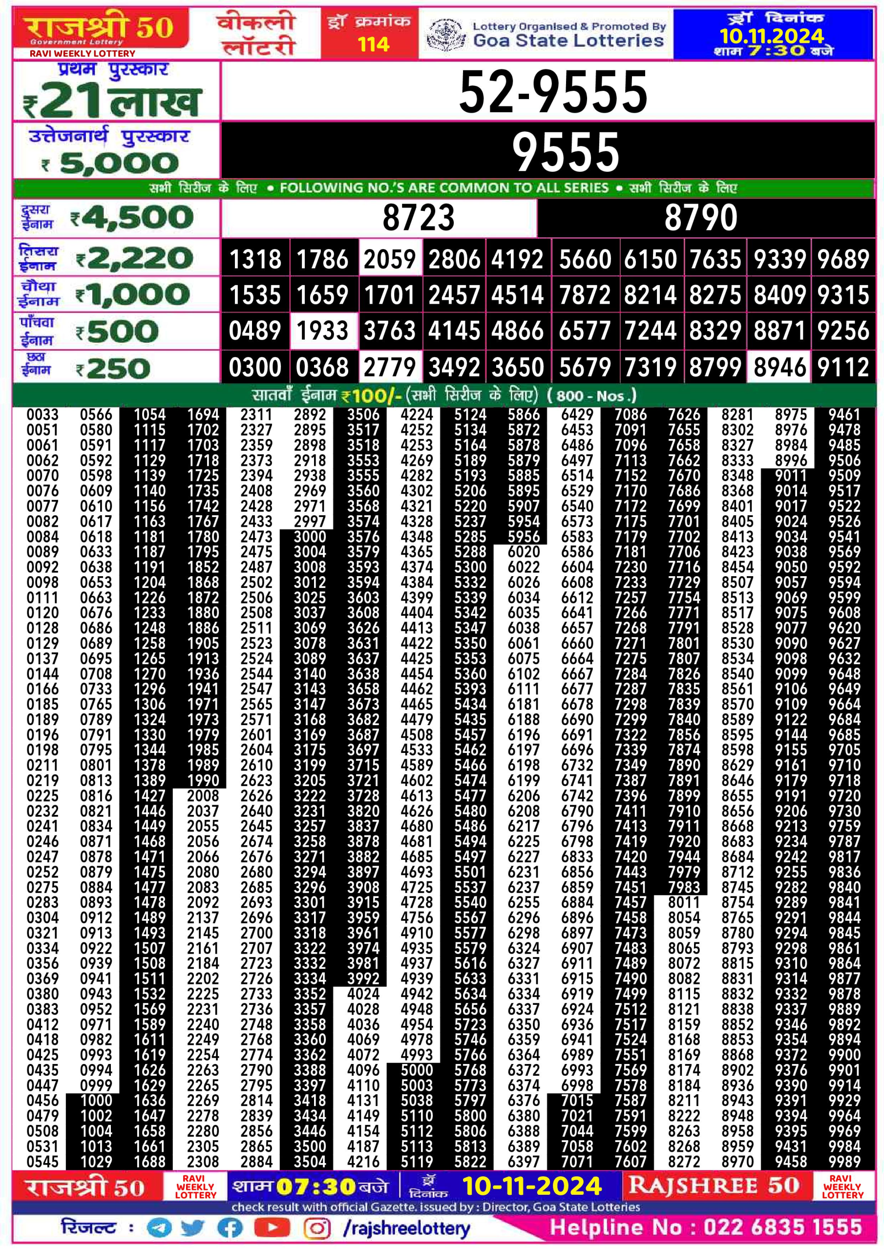 Rajshree 50  Lottery 7:30PM Result 10.11.24