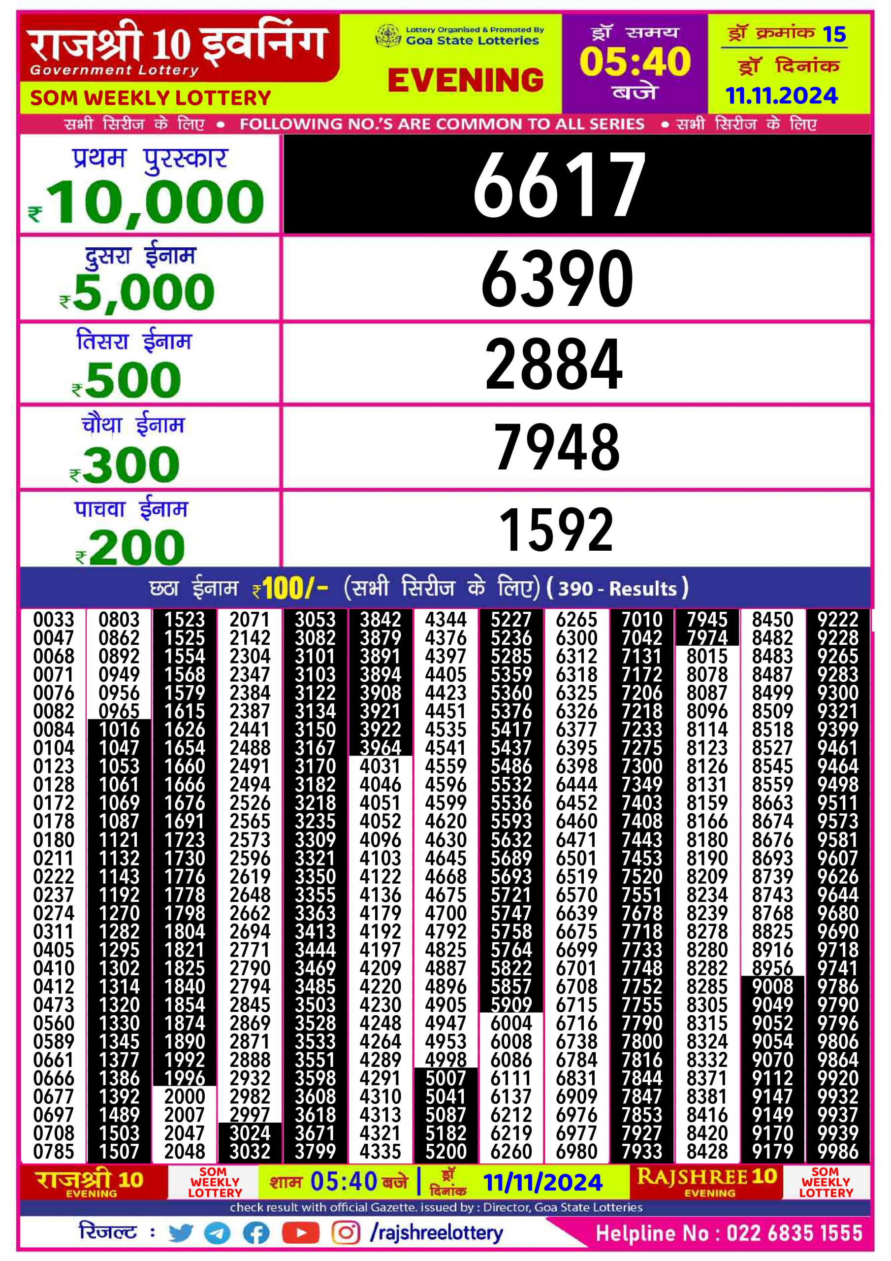 Rajshree 10 evening sunday  5:40pm result 10.11.24