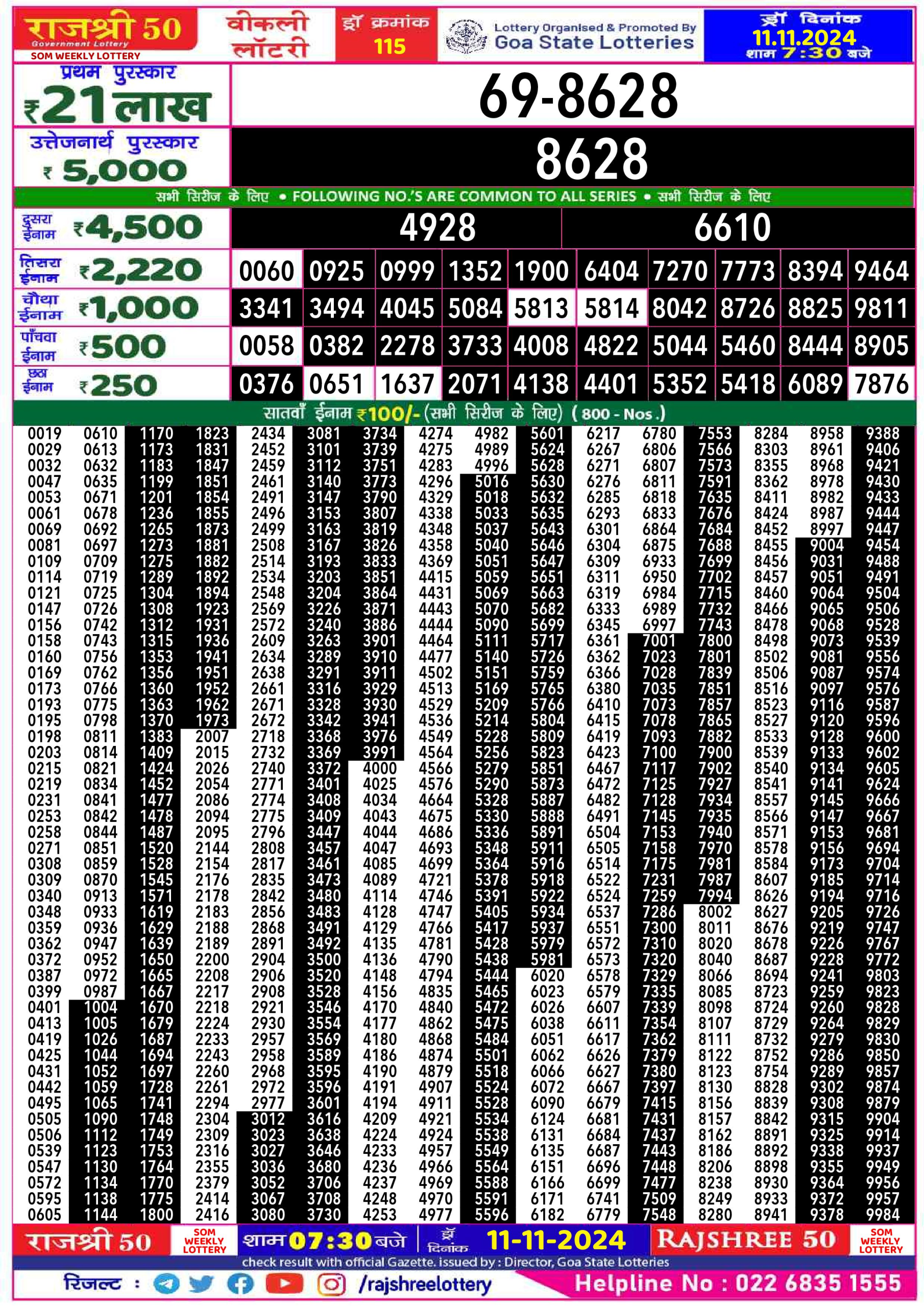 Rajshree 50  Lottery 7:30PM Result 11.11.24