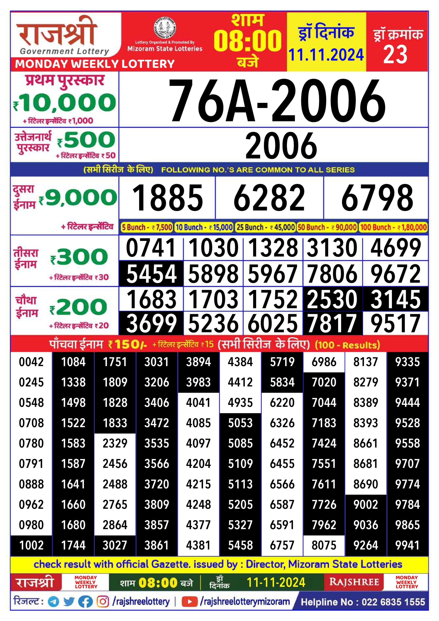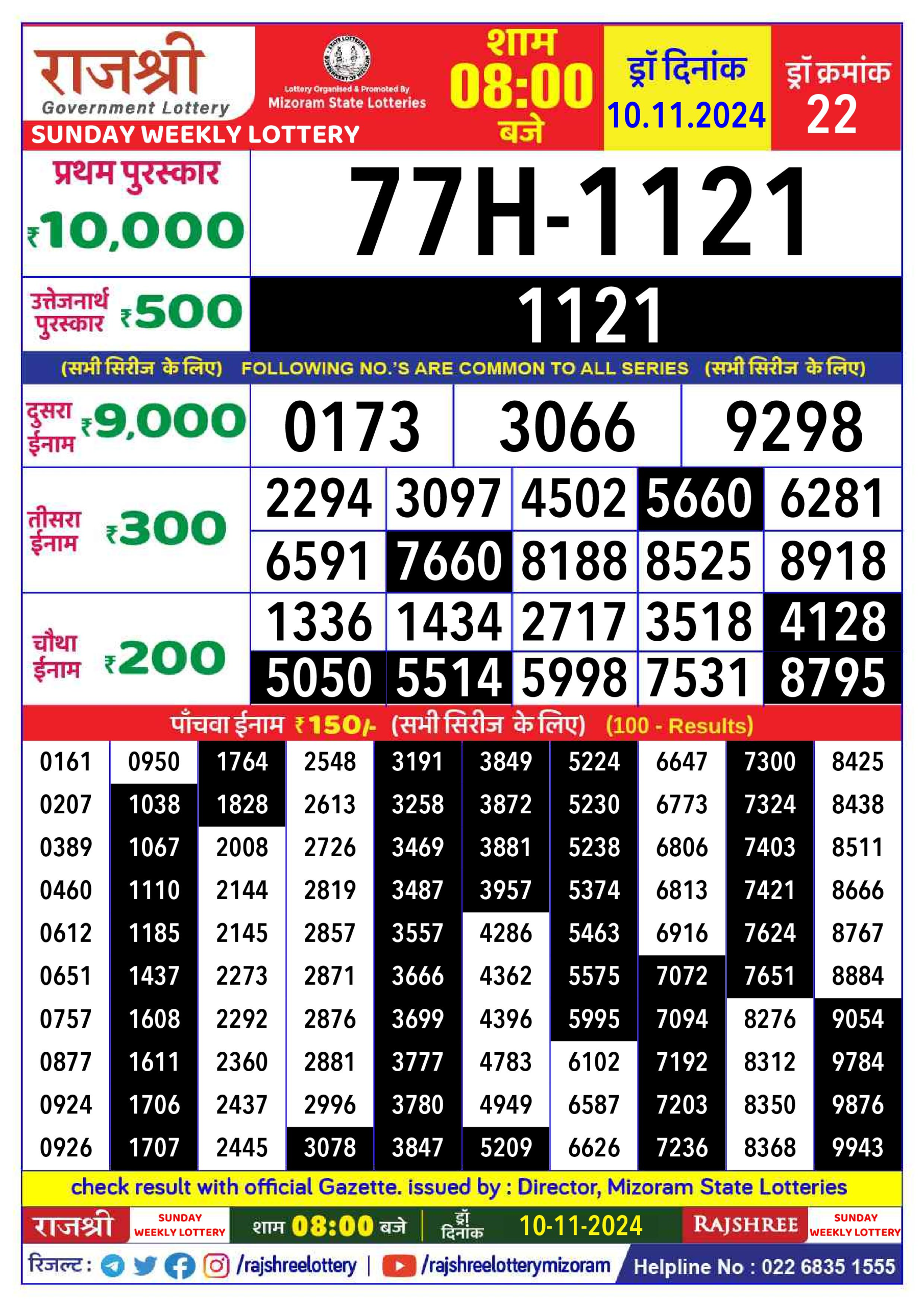 Rajshree 10 evening monday  5:40pm result 11.11.24