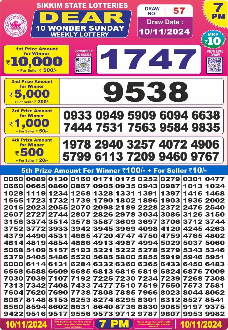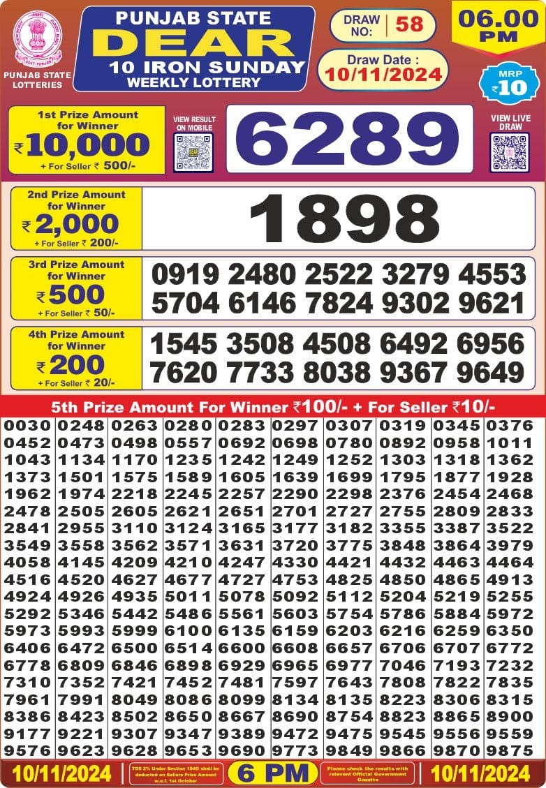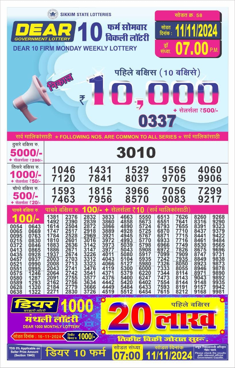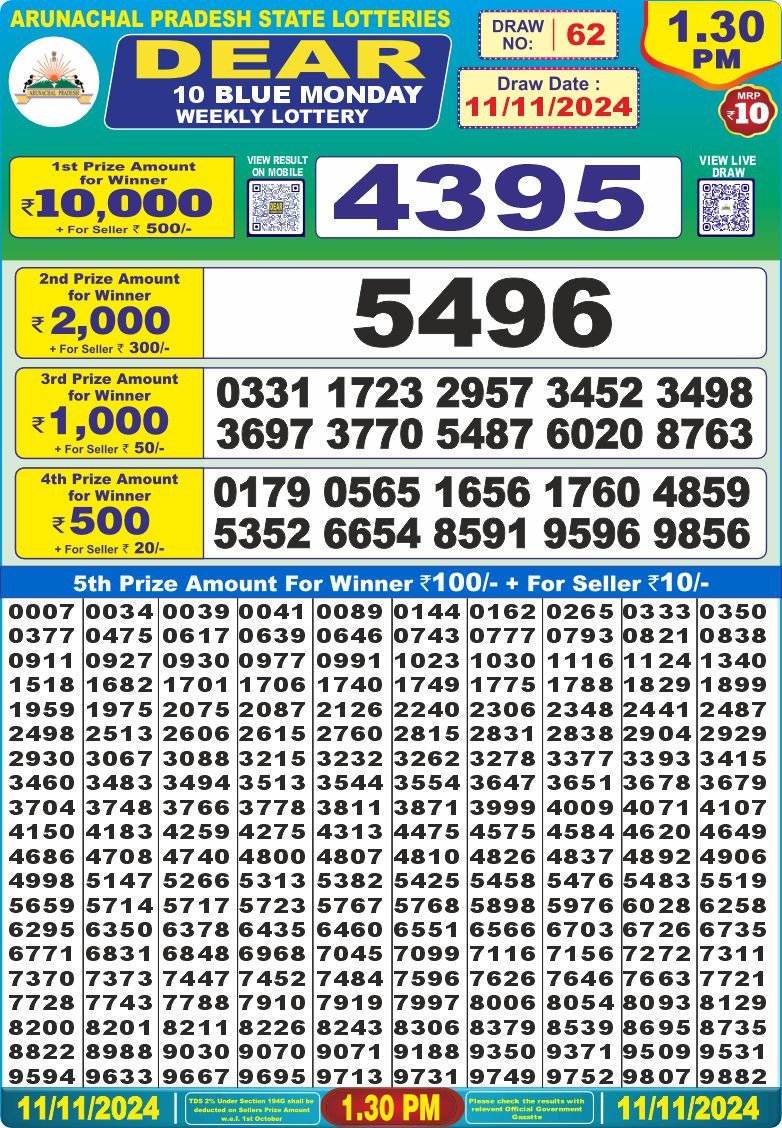 Dear 10 blue lottery 1.30PM Result 11/11/24