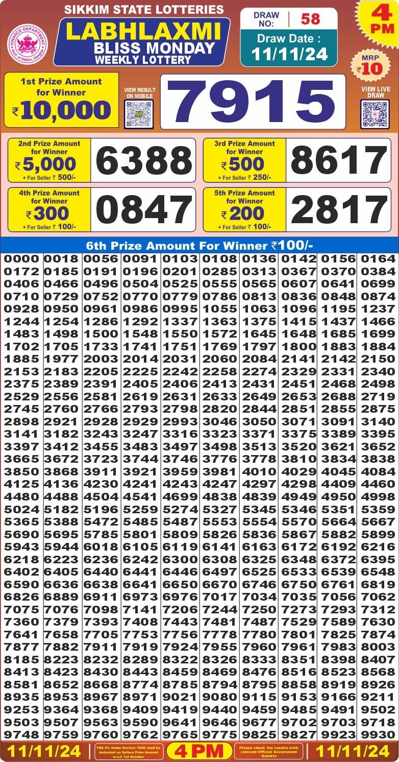 LabhLaxmi bliss weekly 4PM Result 11.11.24
