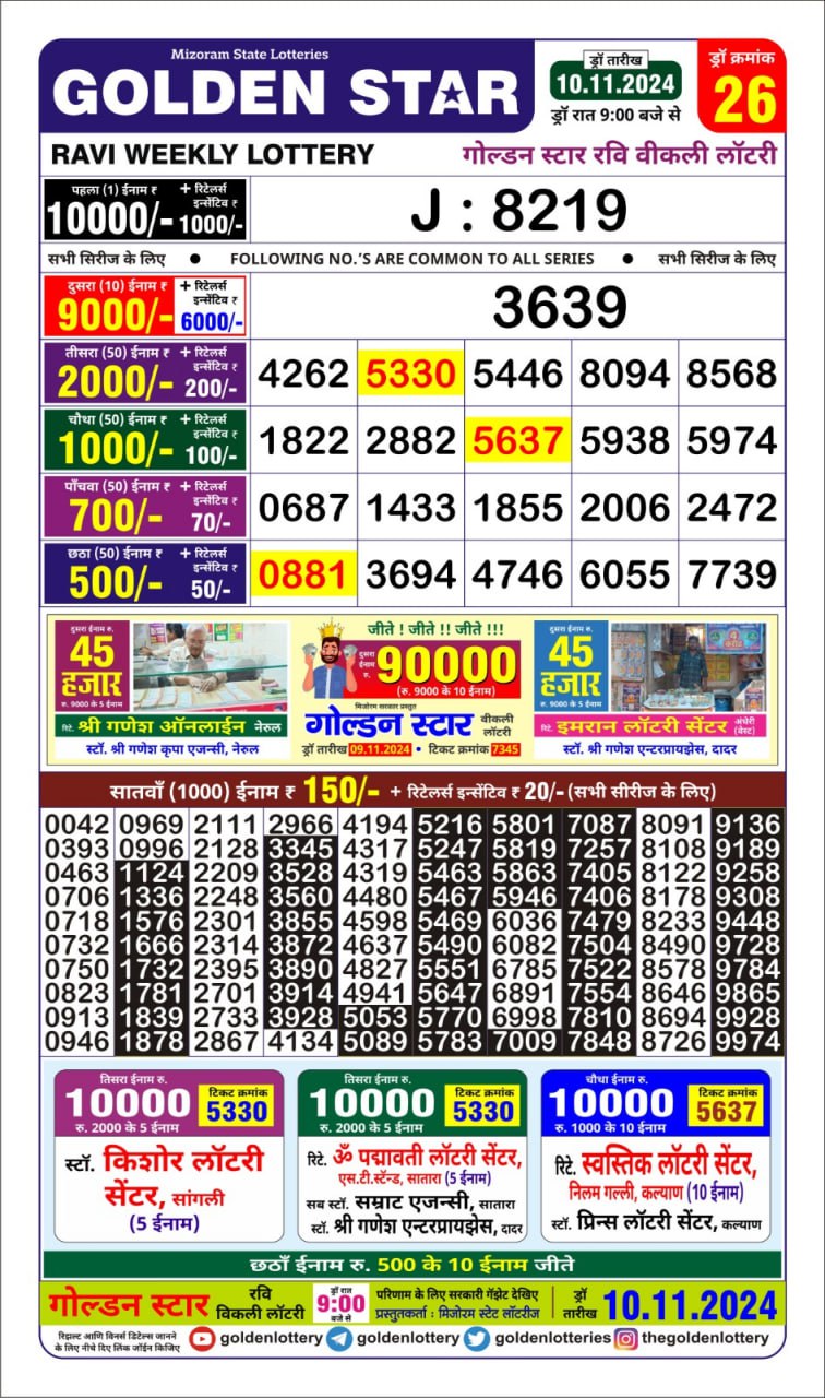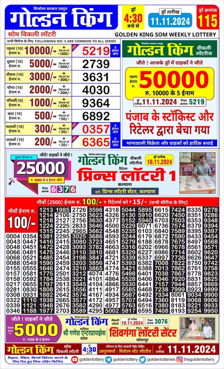 Golden king  weekly lottery 4.30pm result 10.11.24