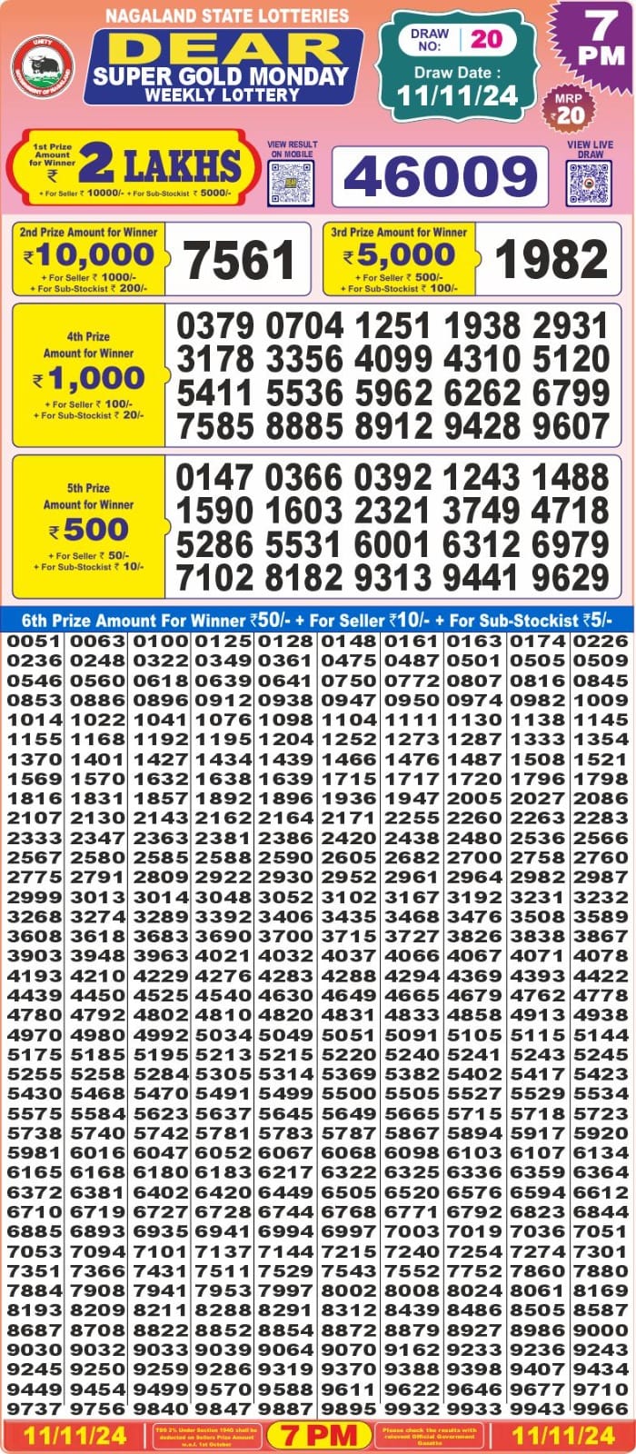 Dear dwarka monday Weekly 1pm result 11-11-24