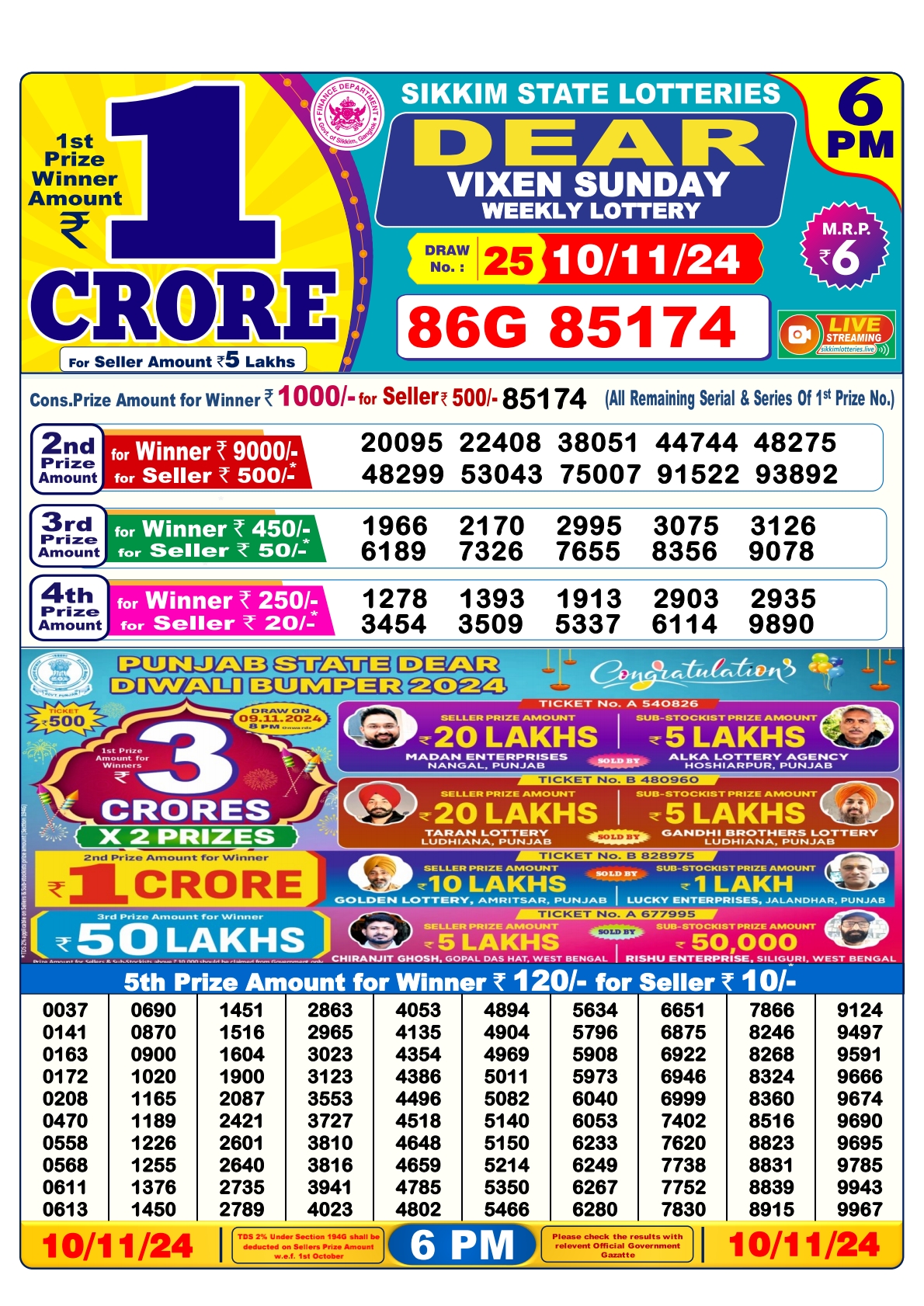 Dear  vixen  sunday  weekly  6PM Result 10.11.24