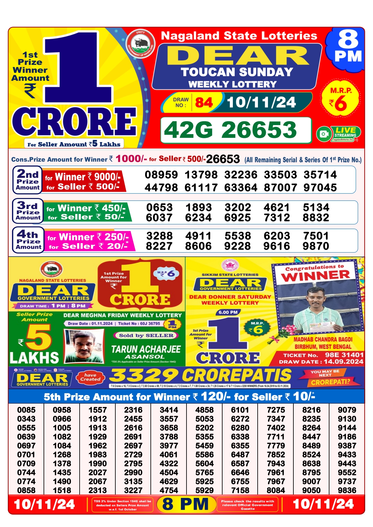 Dear toucan  Weekly Lottery 8PM Result 10.11.24