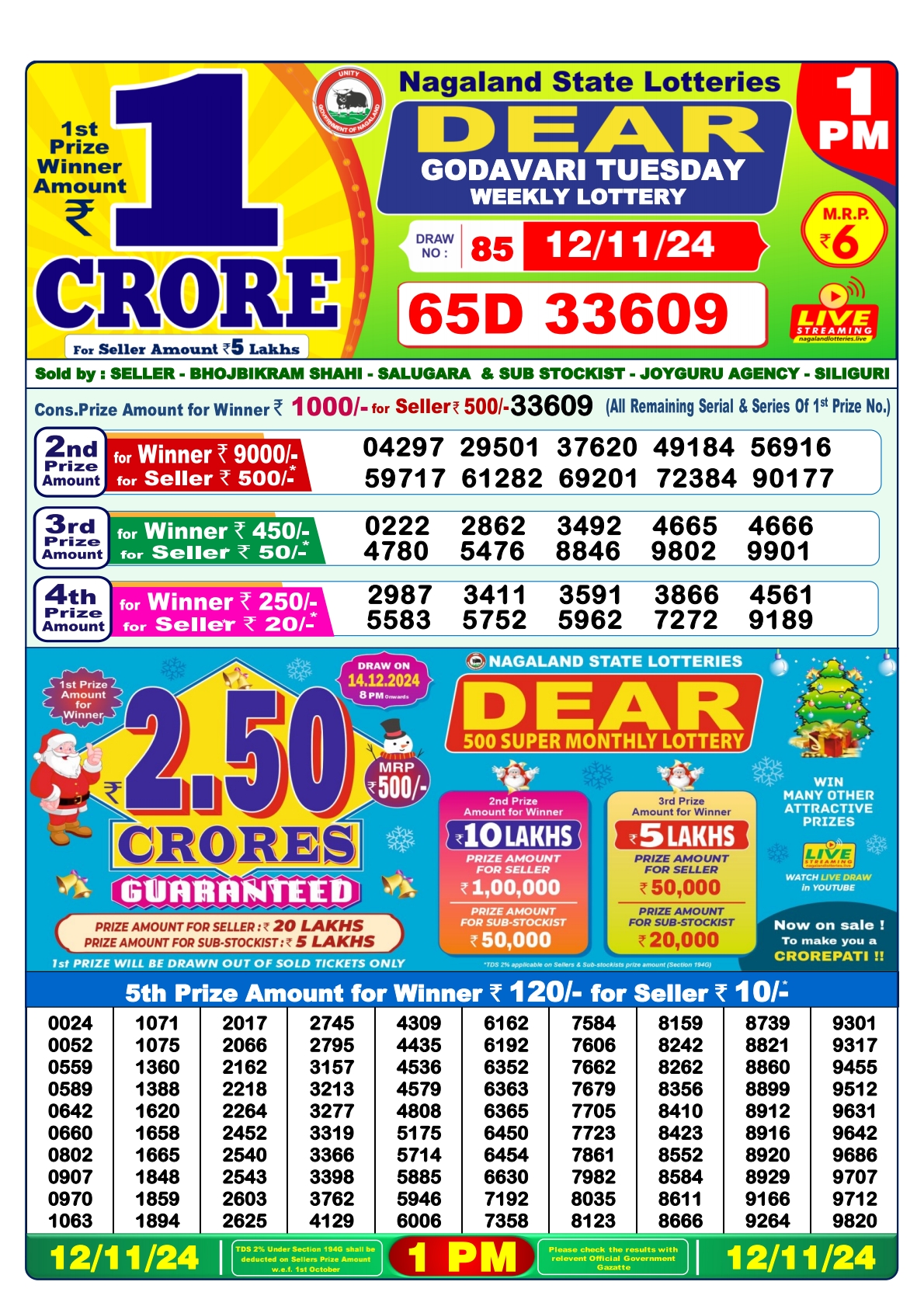 Dear godavari tuesday Weekly 1pm result 12-11-24