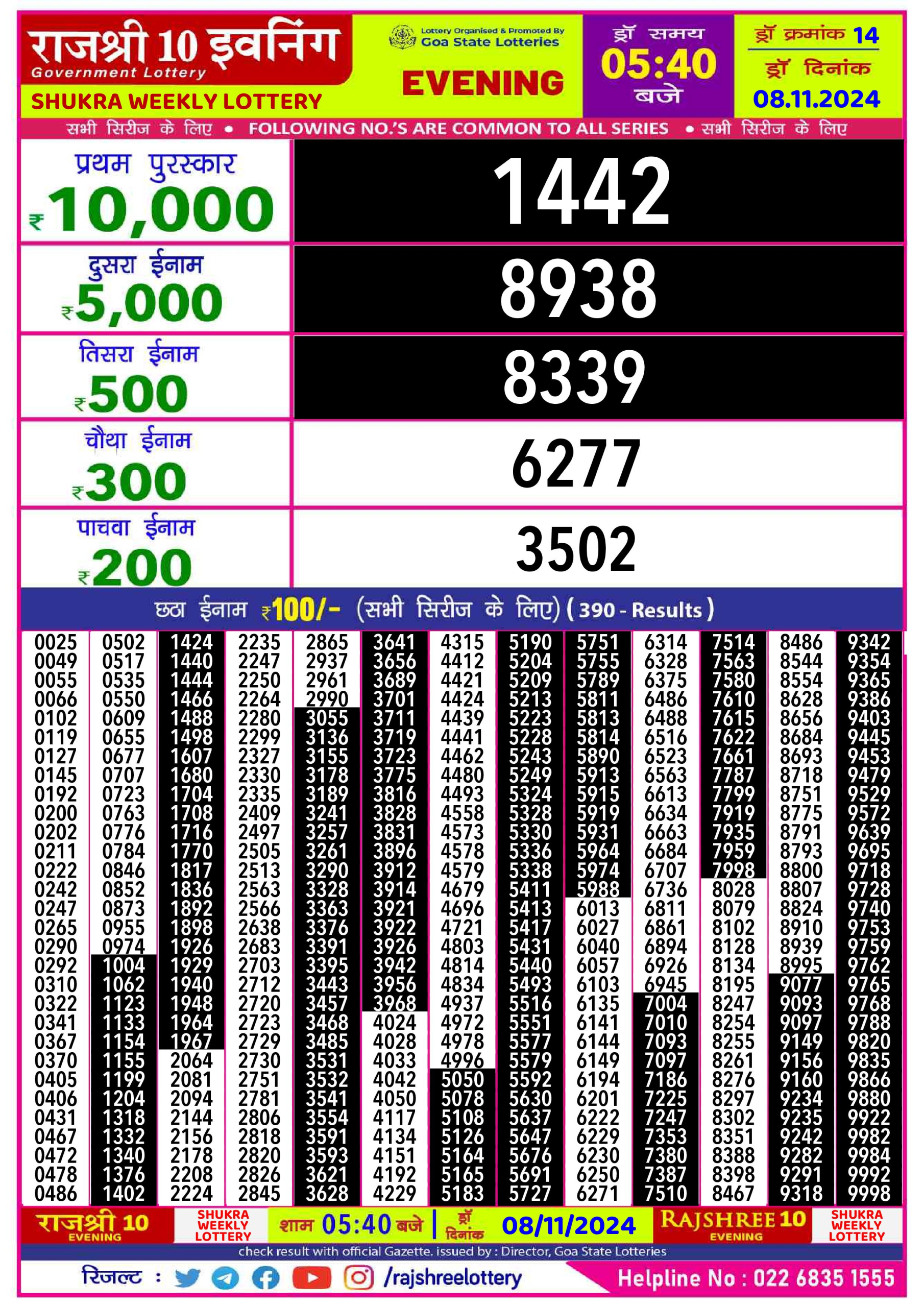 Rajshree 10 evening friday  5:40pm result 8.11.24