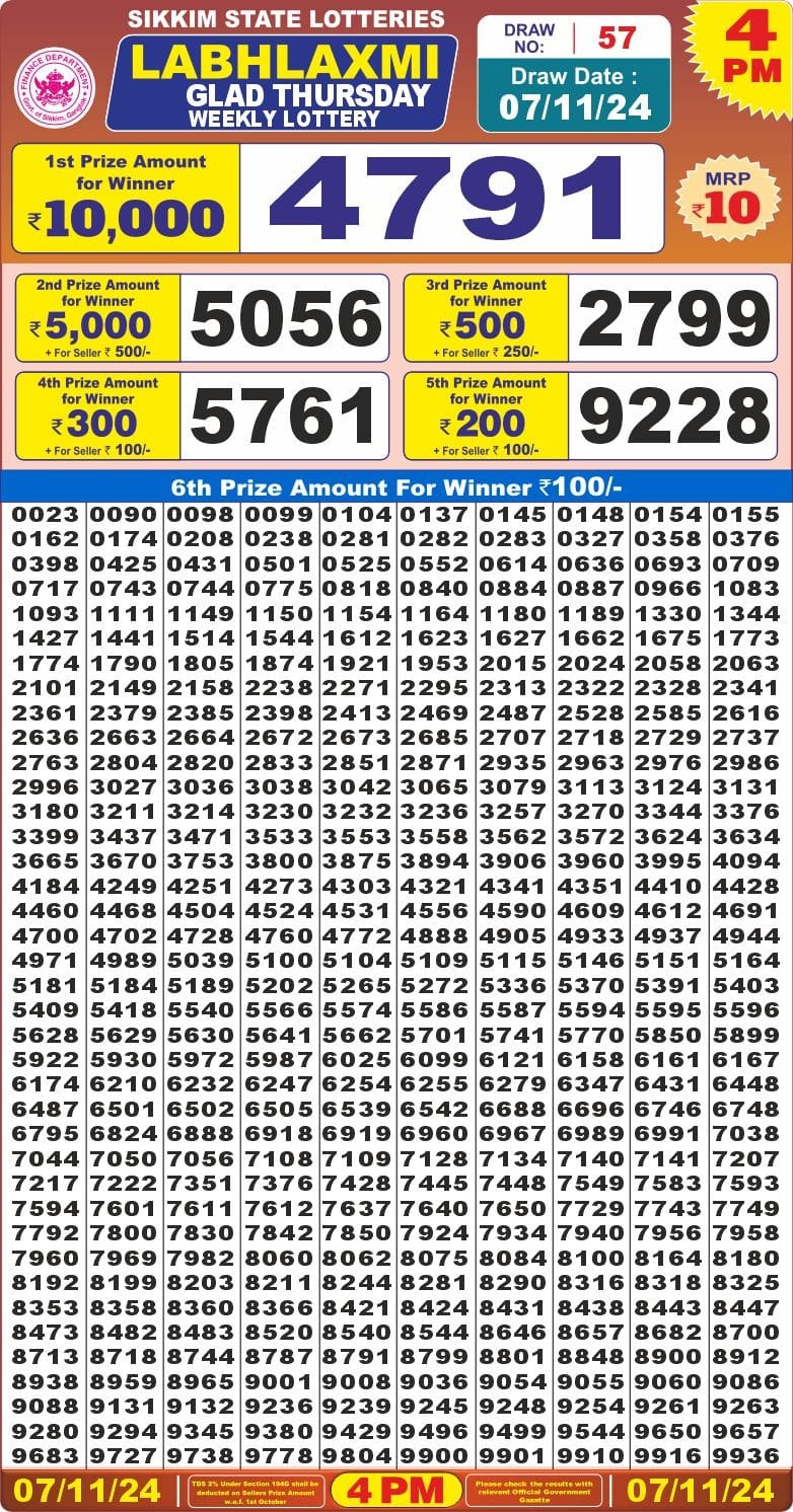 LabhLaxmi glad weekly 4PM Result 7.11.24