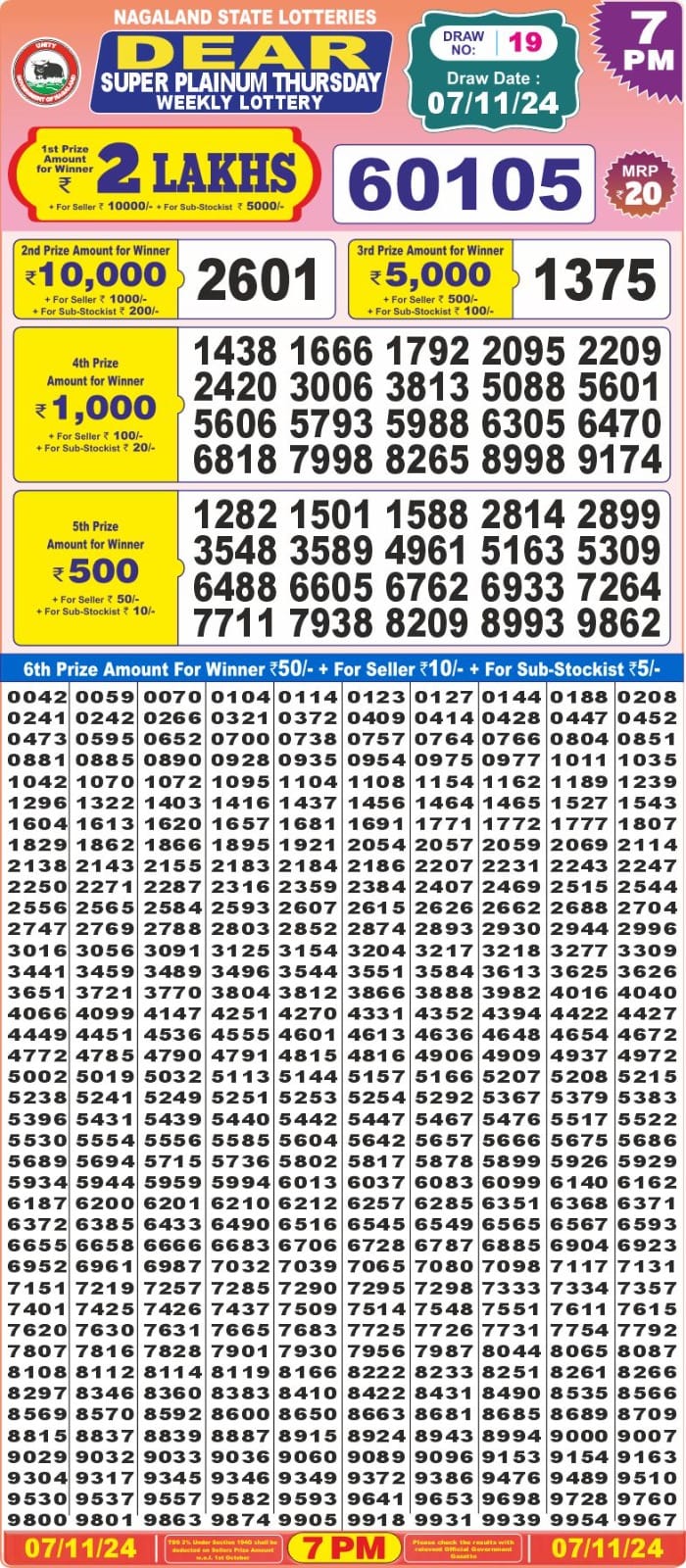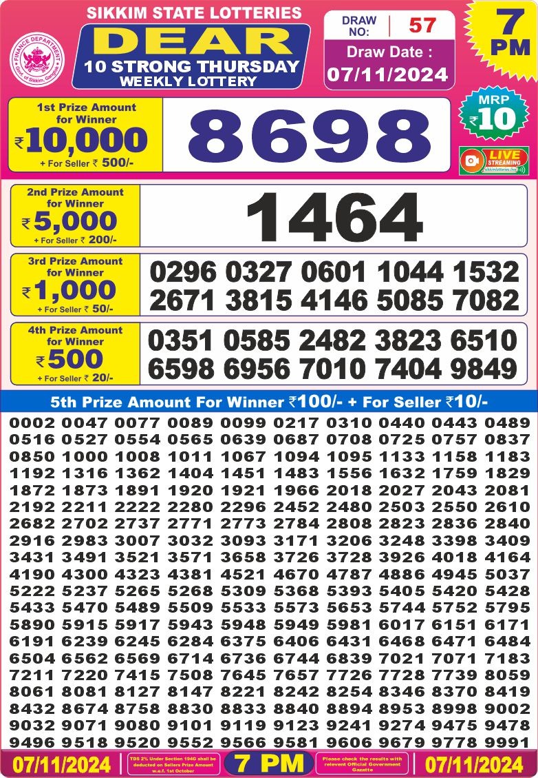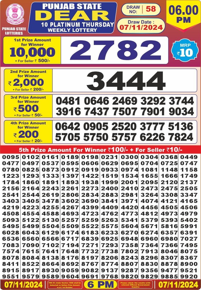 Dear 10 pink lottery 1.30PM Result 7/11/24