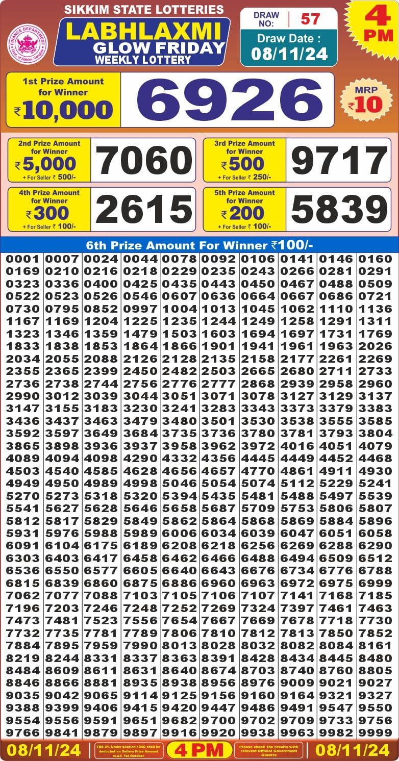 LabhLaxmi glow weekly 4PM Result 8.11.24