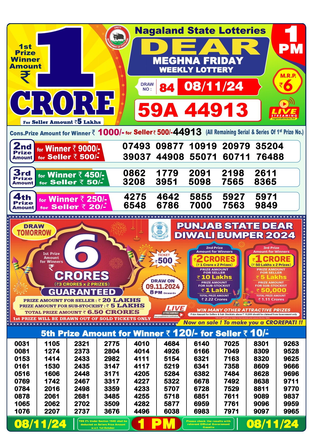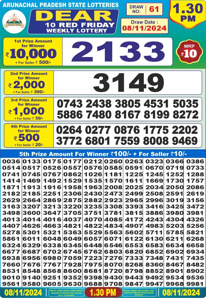 Dear 10 red lottery 1.30PM Result 8/11/24