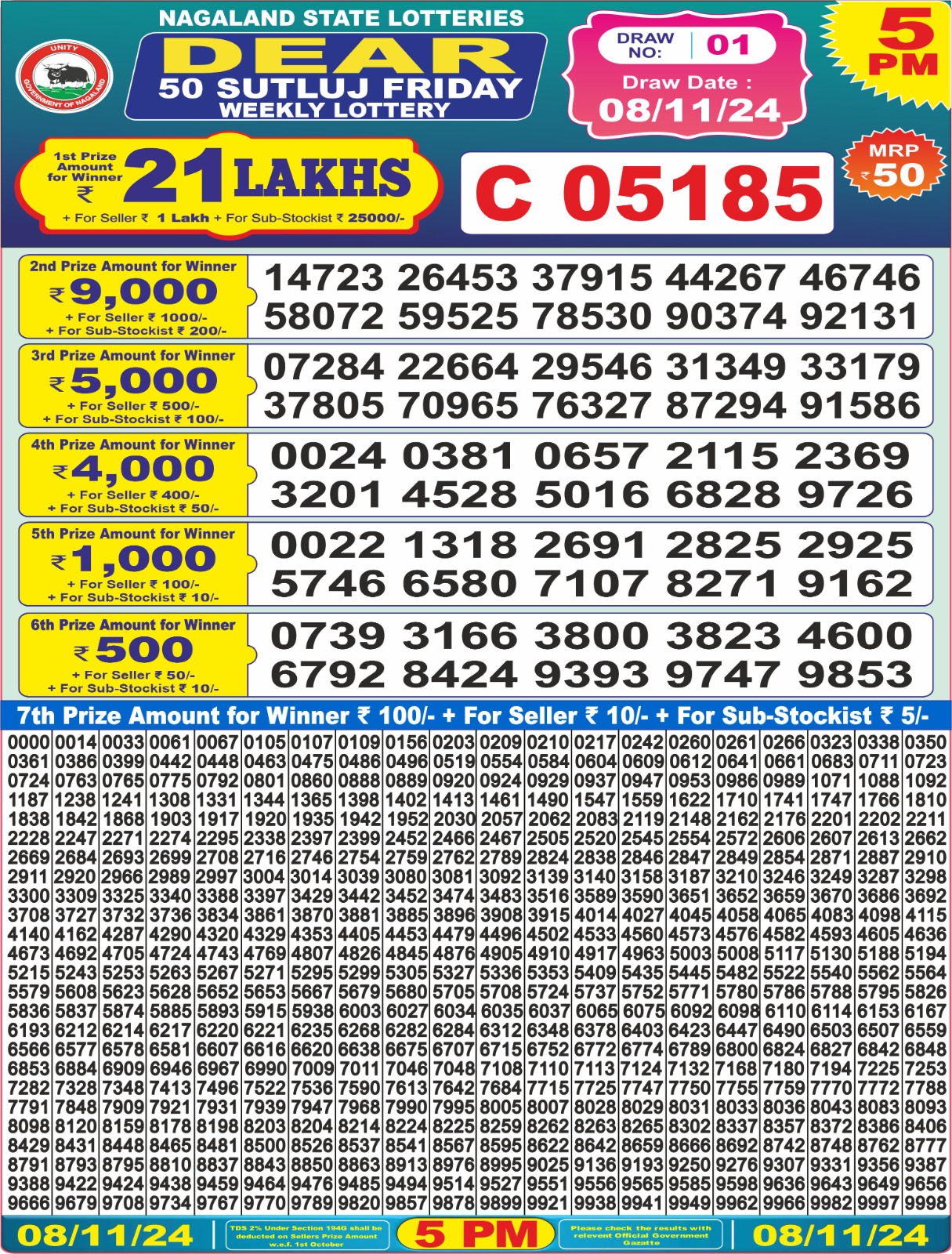 Dear 50 sutluj friday  Lottery 5pm Result  8.11.2024