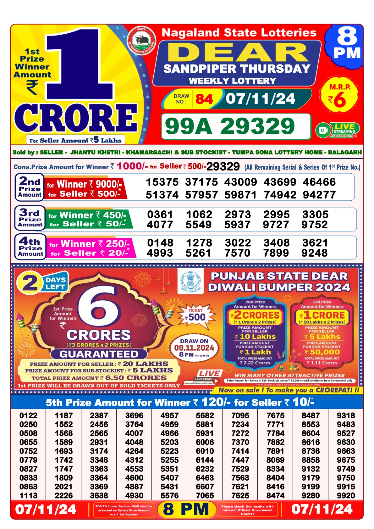 Dear   sandpiper Weekly Lottery 8PM Result 7.11.24