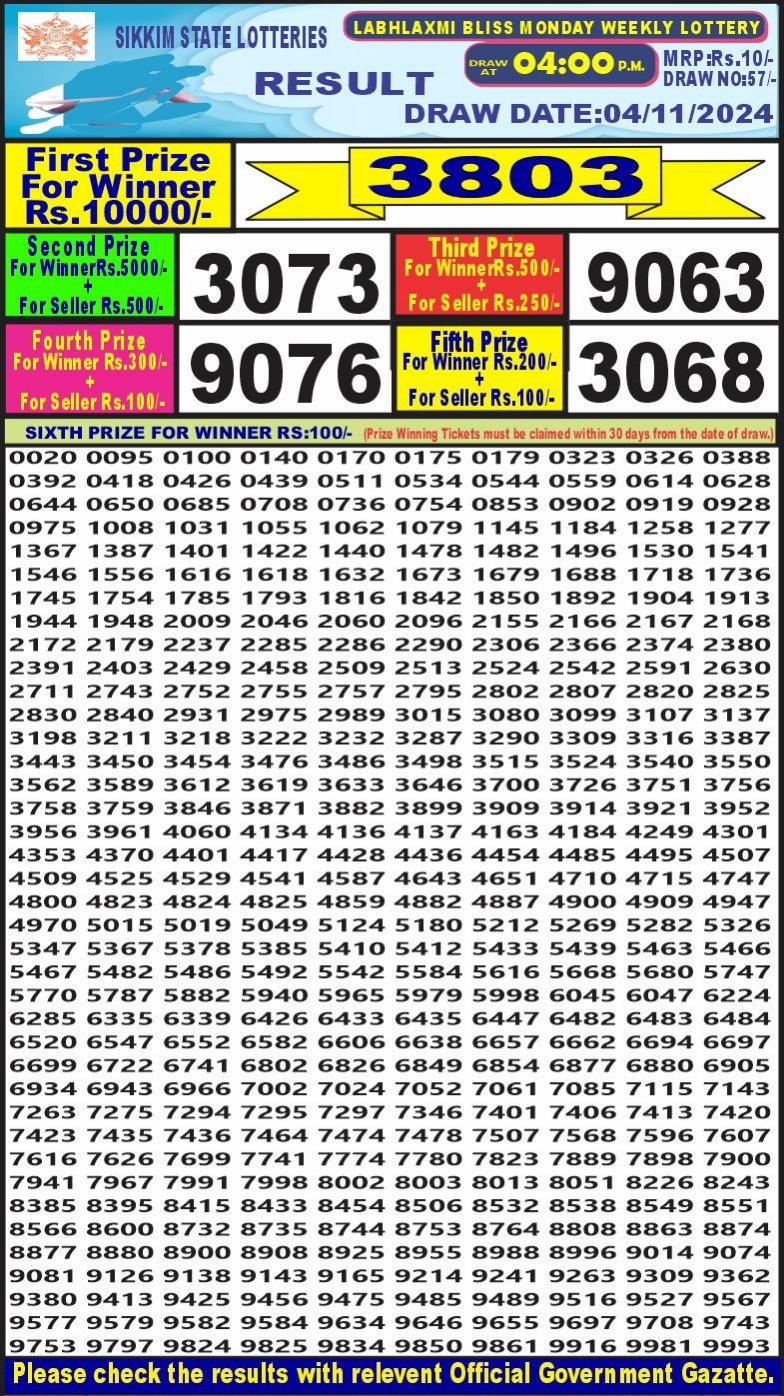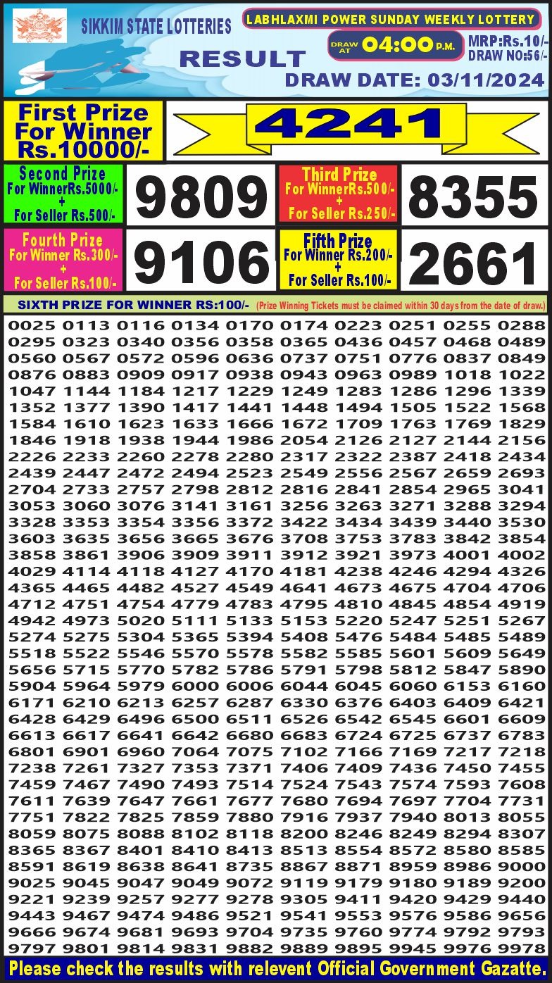 LabhLaxmi power weekly 4PM Result 3.11.24