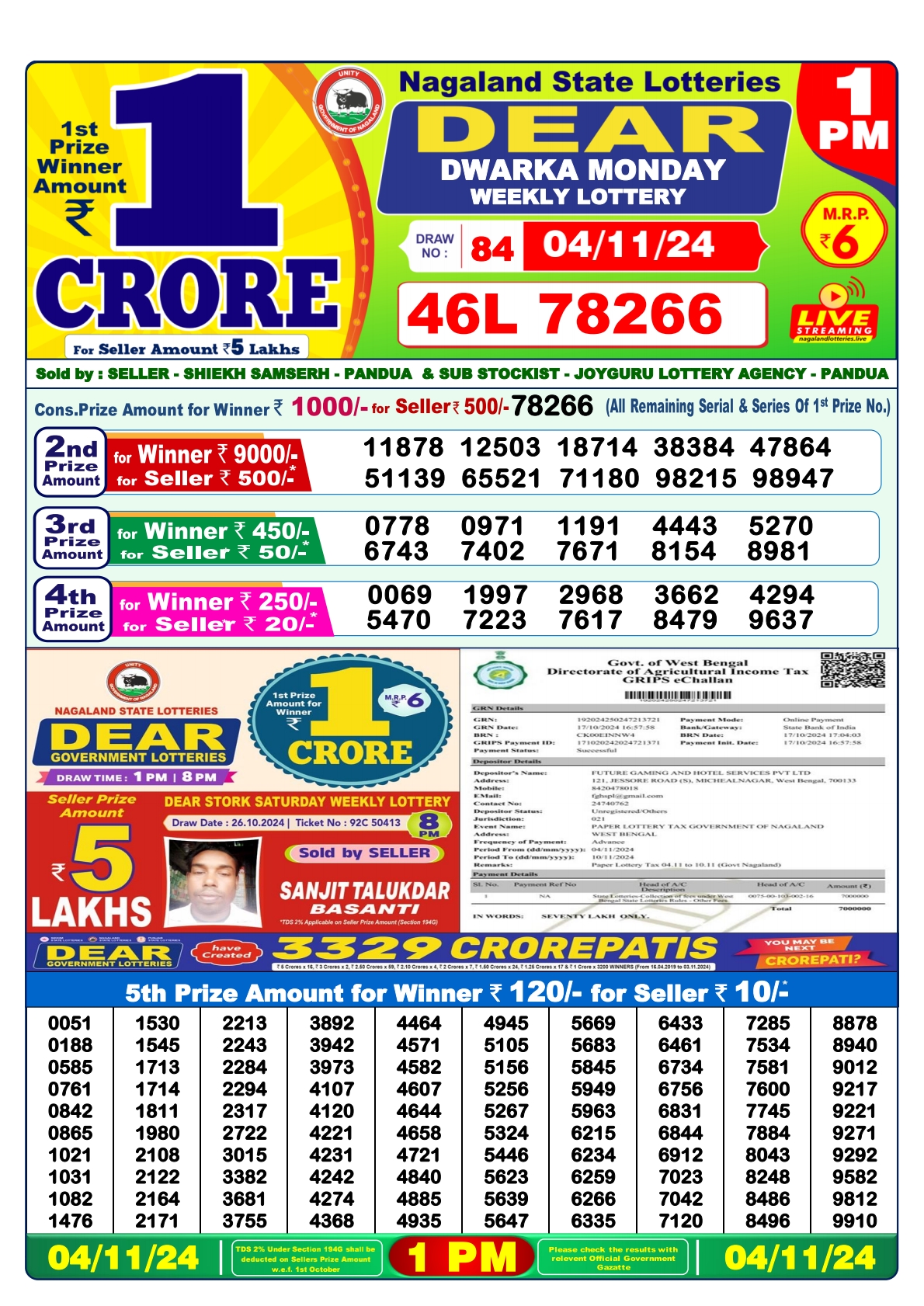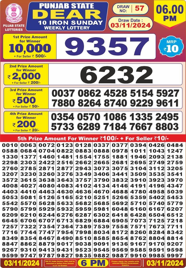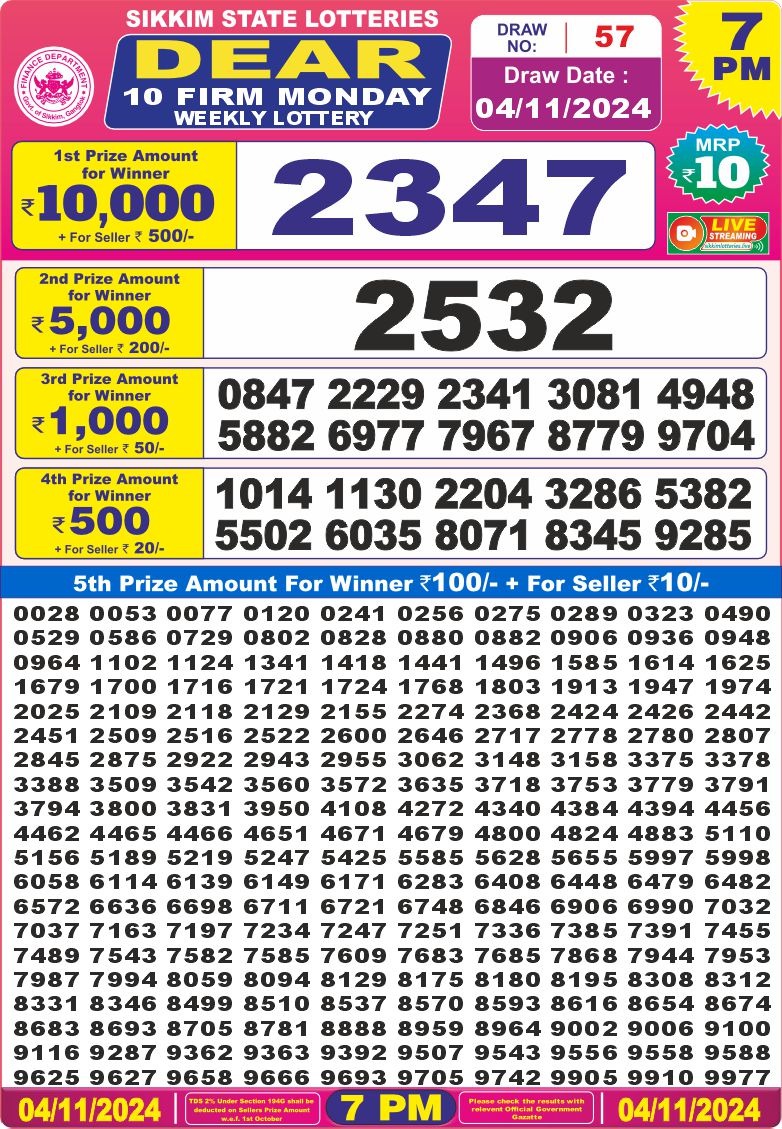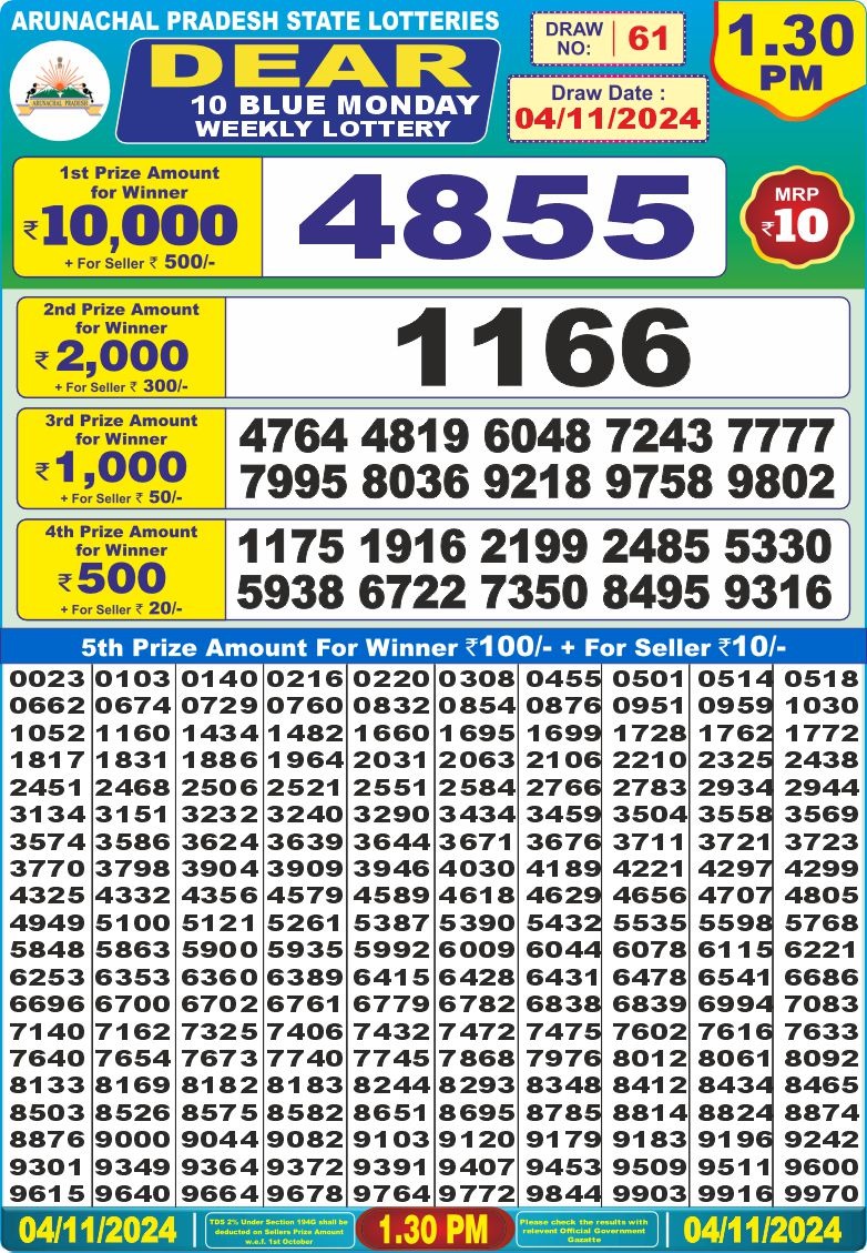 Dear 10 blue lottery 1.30PM Result 4/11/24