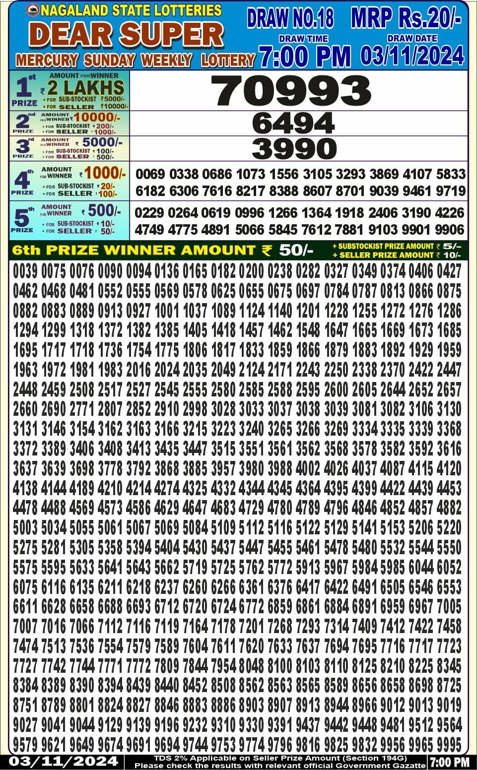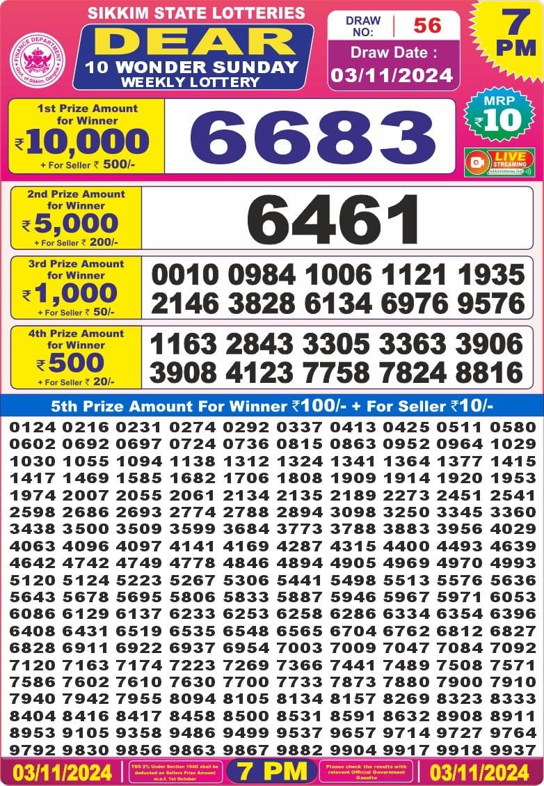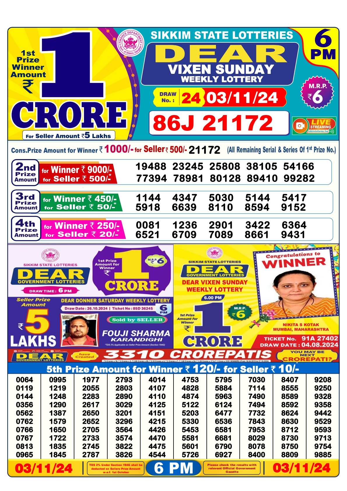 Dear vixen sunday  weekly  6PM Result 3.11.24