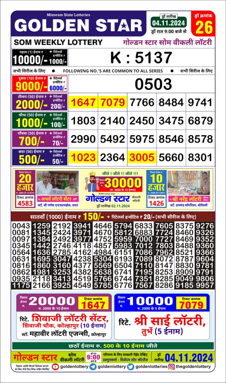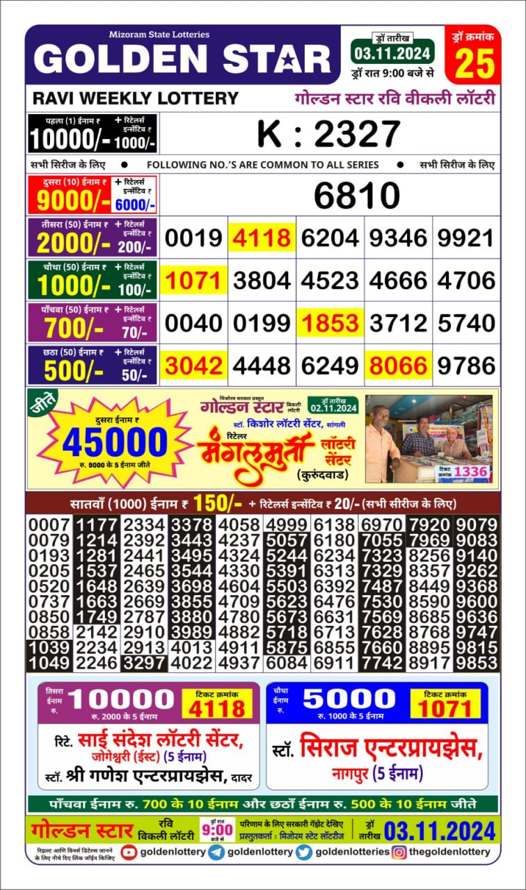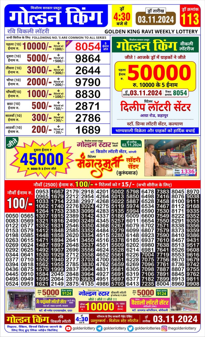 Golden king  weekly lottery 4.30pm result 3.11.24