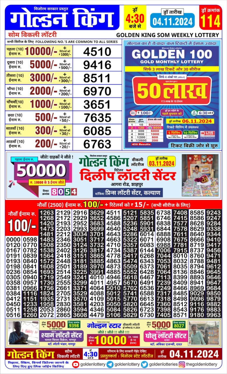 Golden king  weekly lottery 4.30pm result 4.11.24
