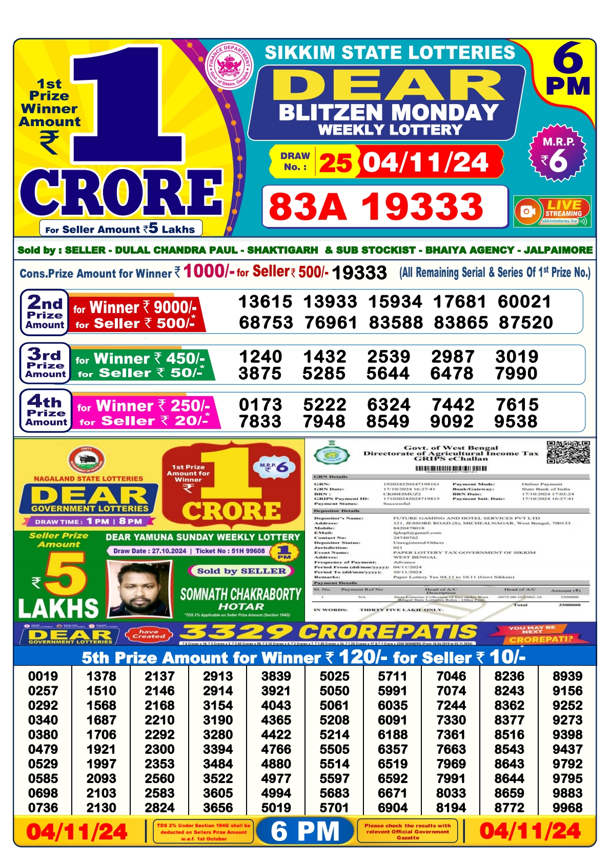 Dear blitzen monday  weekly  6PM Result 4.11.24