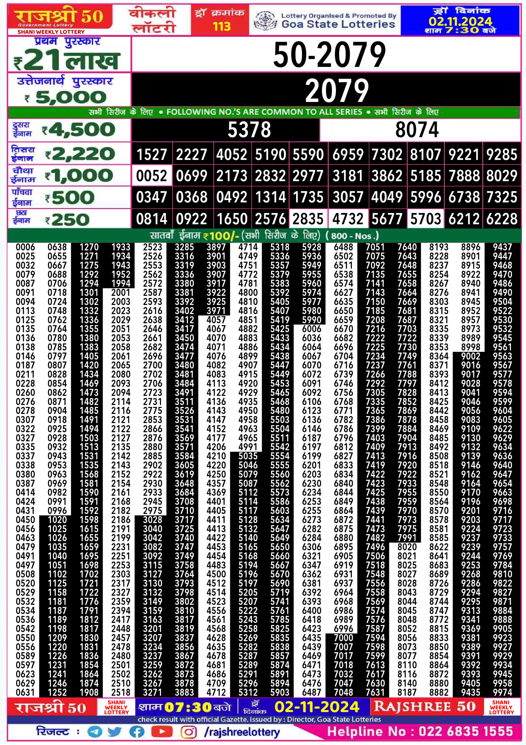 Rajshree 50  Lottery 7:30PM Result 2.11.24
