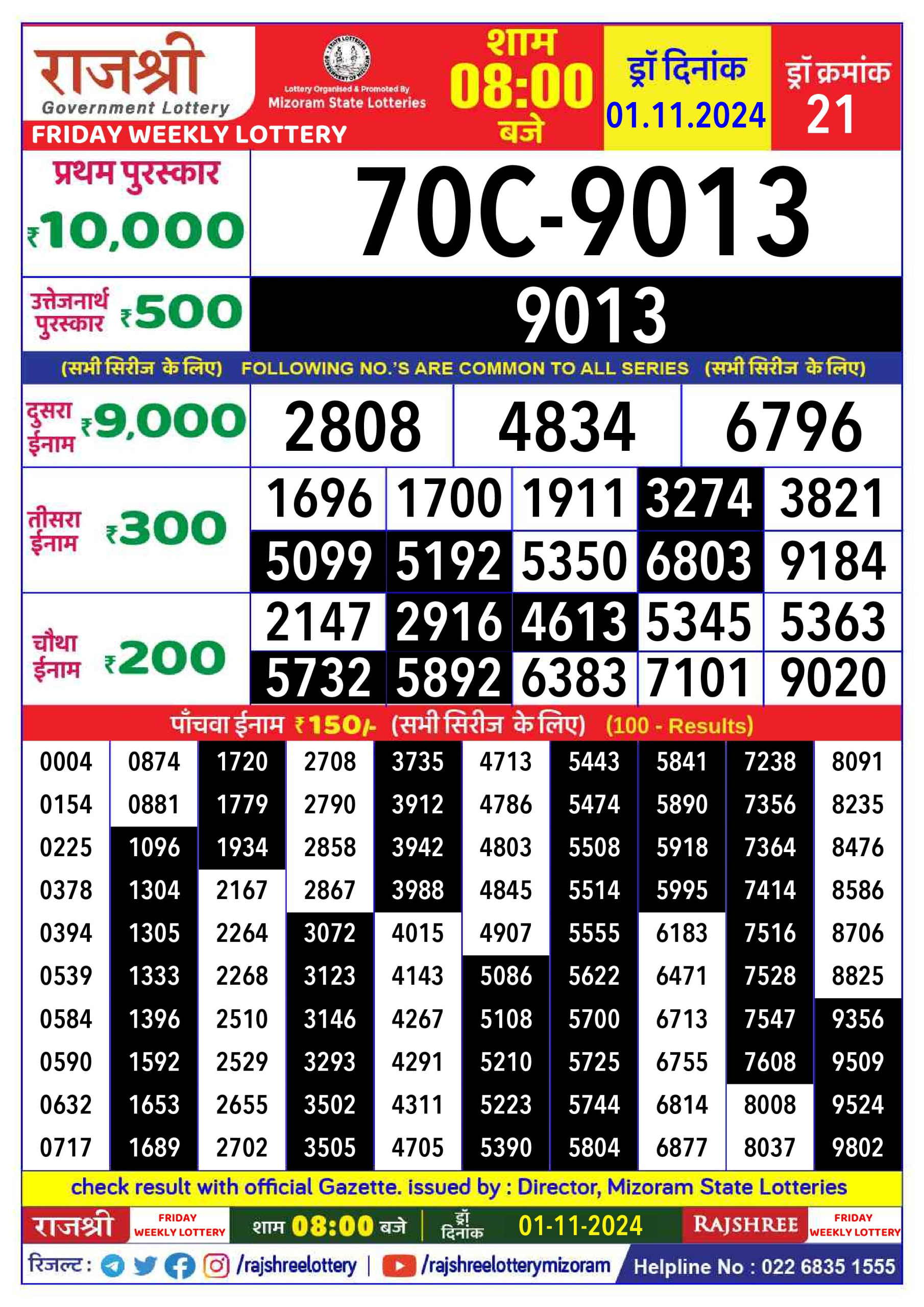Rajshree  Weekly Lottery 8PM Result 1.11.24