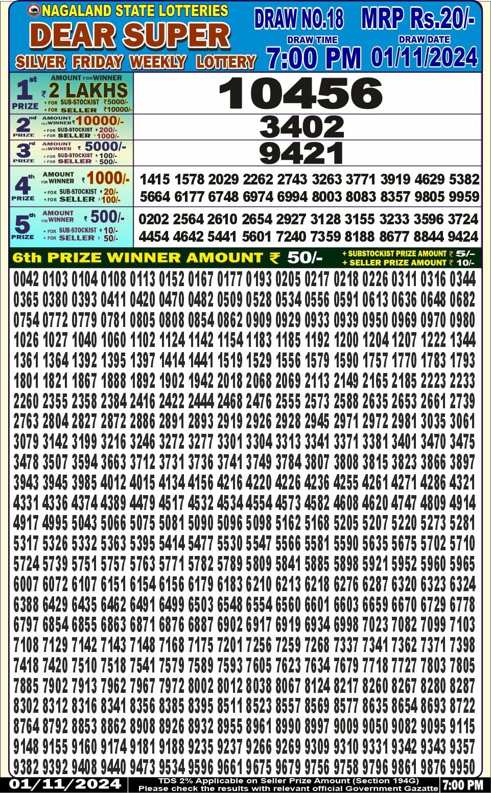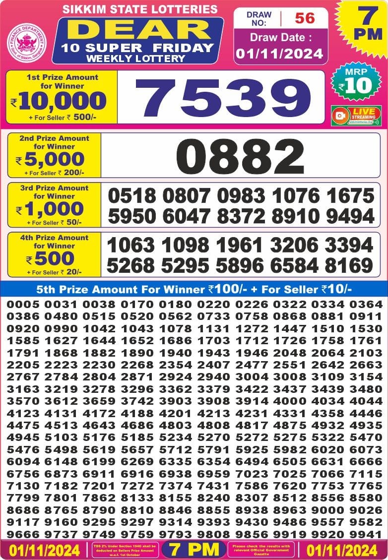 Dear 10 super 7pm result 1-11-24