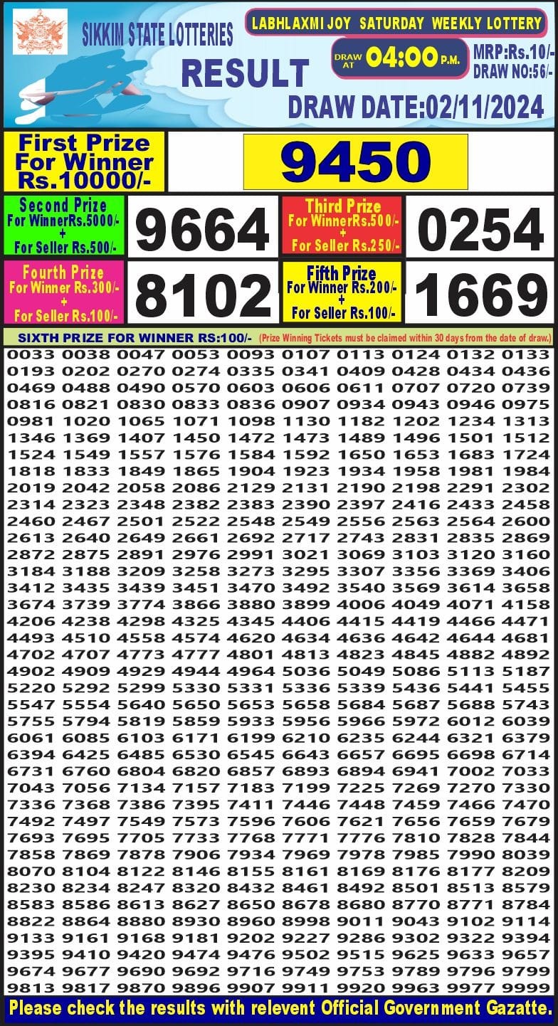 LabhLaxmi joy weekly 4PM Result 2.11.24