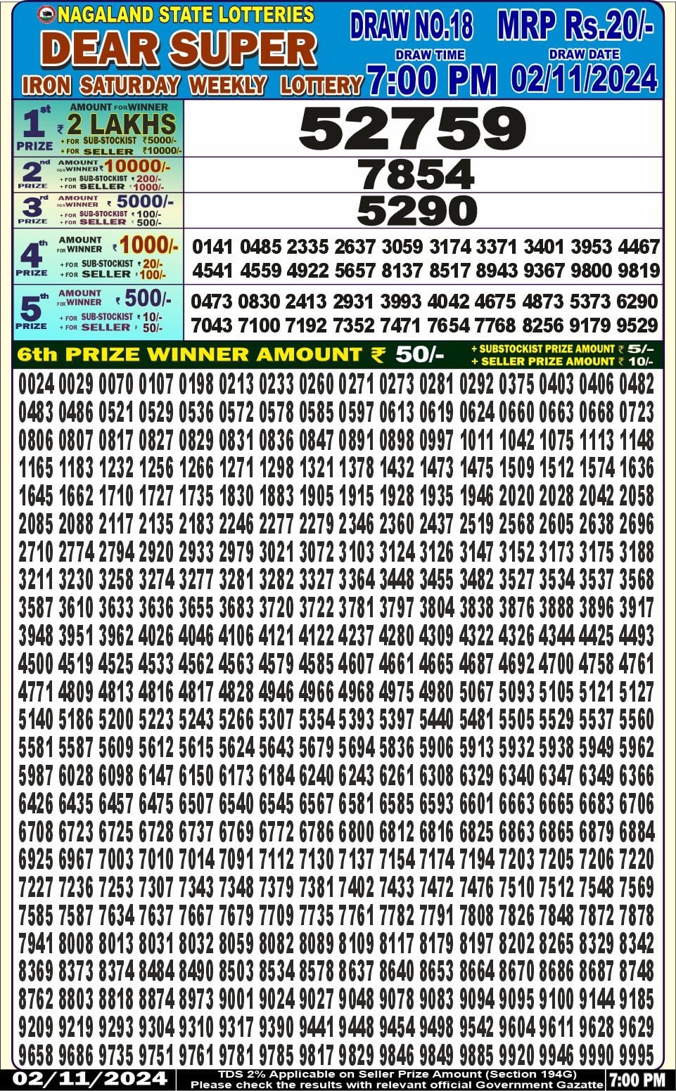 Dear super iron 7pm lottery result 2.11.24